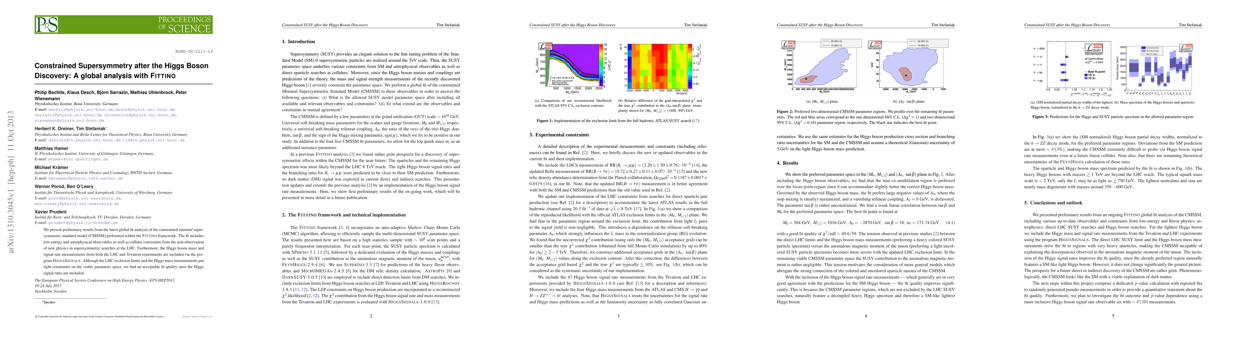 This paper presents a global fit analysis of the constrained minimal supersymmetric standard model (CMSSM) using the Fittino framework, incorporating low-energy, astrophysical, collider, and Higgs boson data. Despite stringent LHC exclusion limits and Higgs mass measurements, the inclusion of Higgs signal rates maintains an acceptable fit quality.