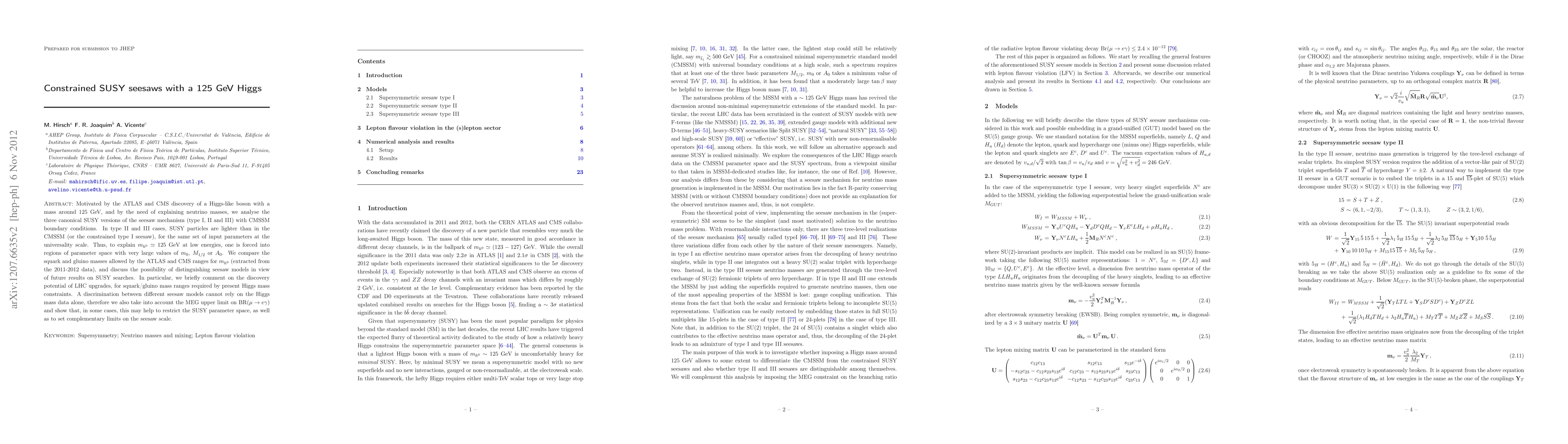 Motivated by the ATLAS and CMS discovery of a Higgs-like boson with a mass around 125 GeV, and by the need of explaining neutrino masses, we analyse the three canonical SUSY versions of the seesaw mechanism (type I, II and III) with CMSSM boundary conditions. In type II and III cases, SUSY particles are lighter than in the CMSSM (or the constrained type I seesaw), for the same set of input parameters at the universality scale. Thus, to explain $m_{h^0} \simeq 125 GeV$ at low energies, one is forced into regions of parameter space with very large values of $m_0$, $M_{1/2}$ or $A_0$. We compare the squark and gluino masses allowed by the ATLAS and CMS ranges for $m_{h^0}$ (extracted from the 2011-2012 data), and discuss the possibility of distinguishing seesaw models in view of future results on SUSY searches. In particular, we briefly comment on the discovery potential of LHC upgrades, for squark/gluino mass ranges required by present Higgs mass constraints. A discrimination between different seesaw models cannot rely on the Higgs mass data alone, therefore we also take into account the MEG upper limit on BR$(\mu \to e \gamma)$ and show that, in some cases, this may help to restrict the SUSY parameter space, as well as to set complementary limits on the seesaw scale.