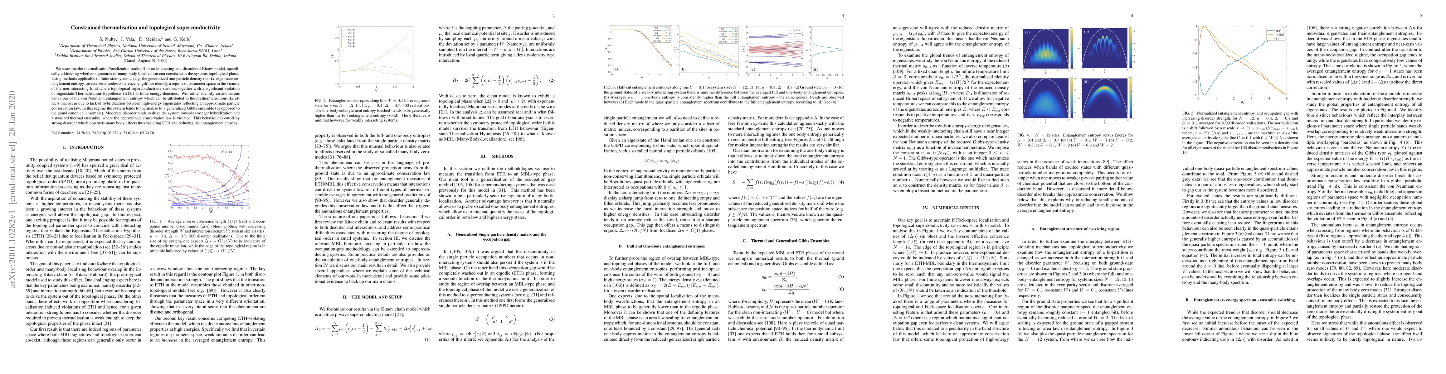 We examine the thermalisation/localization trade off in an interacting and disordered Kitaev model, specifically addressing whether signatures of many-body localization can coexist with the systems topological phase. Using methods applicable to finite size systems, (e.g. the generalized one-particle density matrix, eigenstate entanglement entropy, inverse zero modes coherence length) we identify a regime of parameter space in the vicinity of the non-interacting limit where topological superconductivity survives together with a significant violation of Eigenstate-Thermalisation-Hypothesis (ETH) at finite energy-densities. We further identify an anomalous behaviour of the von Neumann entanglement entropy which can be attributed to the prethermalisation-like effects that occur due to lack of hybridization between high-energy eigenstates reflecting an approximate particle conservation law. In this regime the system tends to thermalise to a generalised Gibbs ensemble (as opposed to the grand canonical ensemble). Moderate disorder tends to drive the system towards stronger hybridization and a standard thermal ensemble, where the approximate conservation law is violated. This behaviour is cutoff by strong disorder which obstructs many body effects thus violating ETH and reducing the entanglement entropy.