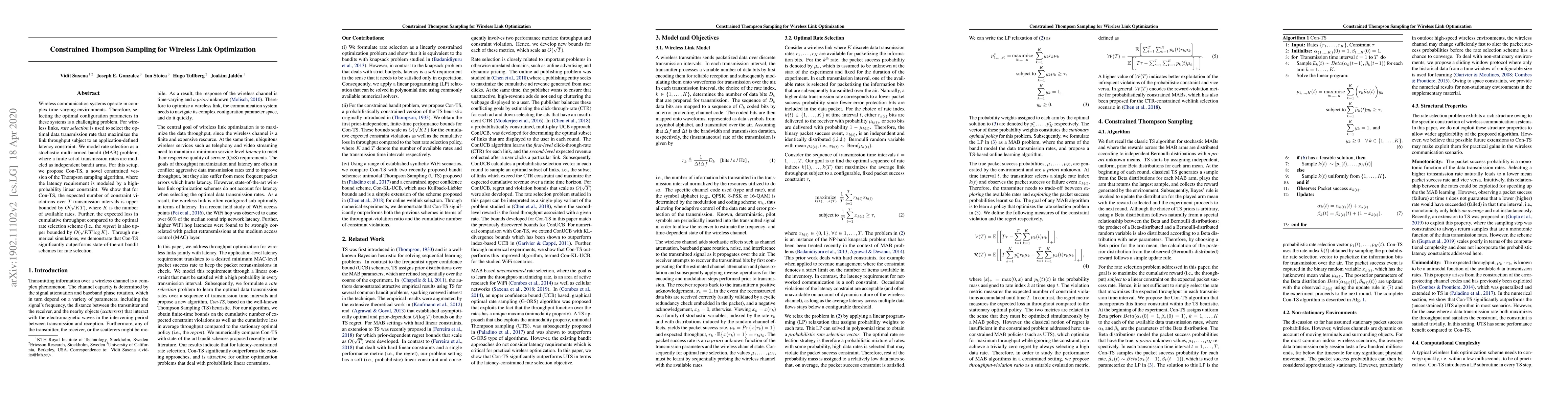 Researchers propose a novel algorithm for optimizing wireless link rates, using Thompson sampling with a latency constraint, and show it outperforms state-of-the-art methods in simulations.