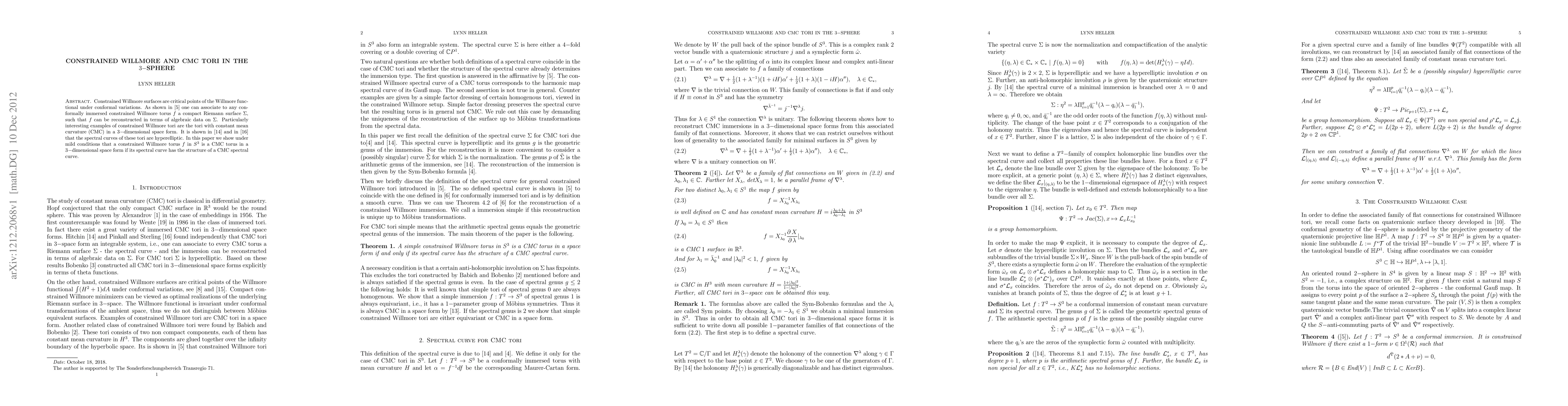 This paper investigates constrained Willmore tori in the 3-sphere, showing that under mild conditions, such tori are CMC tori in a 3-dimensional space form when their spectral curves exhibit CMC spectral curve structure. The study leverages algebraic data from associated compact Riemann surfaces to reconstruct these tori.