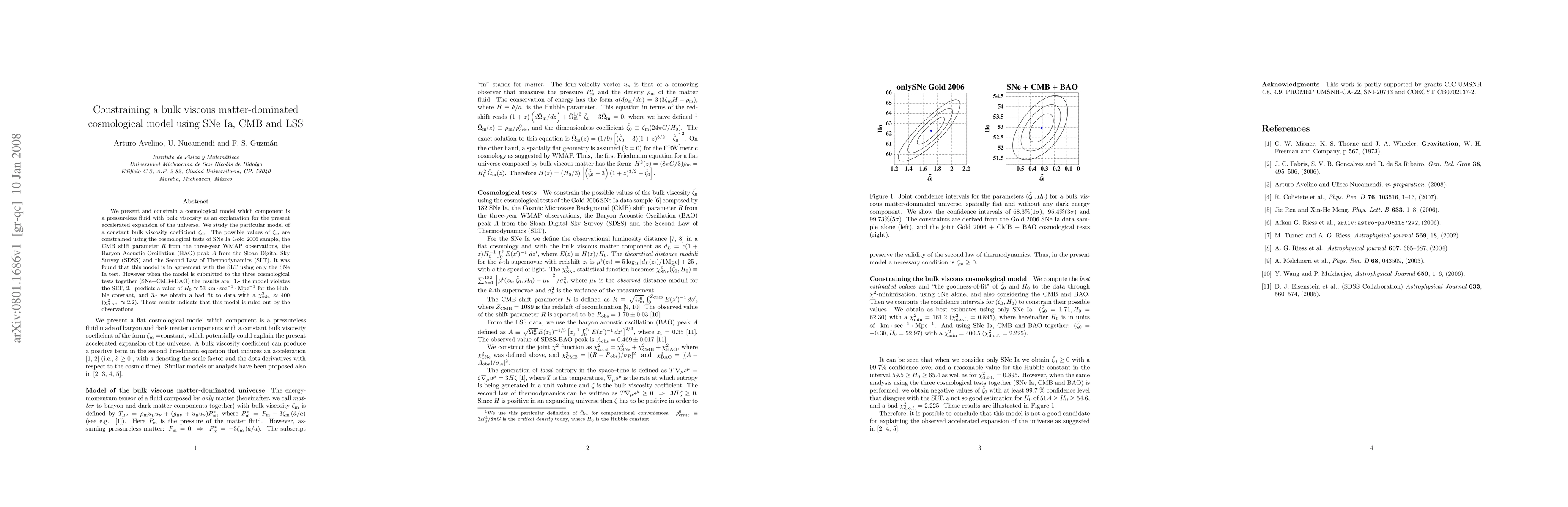 This paper proposes a cosmological model with bulk viscous matter to explain the universe's accelerated expansion, constraining it using SNe Ia, CMB, and LSS data. The model fails when tested against multiple cosmological observations, predicting a Hubble constant value inconsistent with current measurements and resulting in a poor data fit.