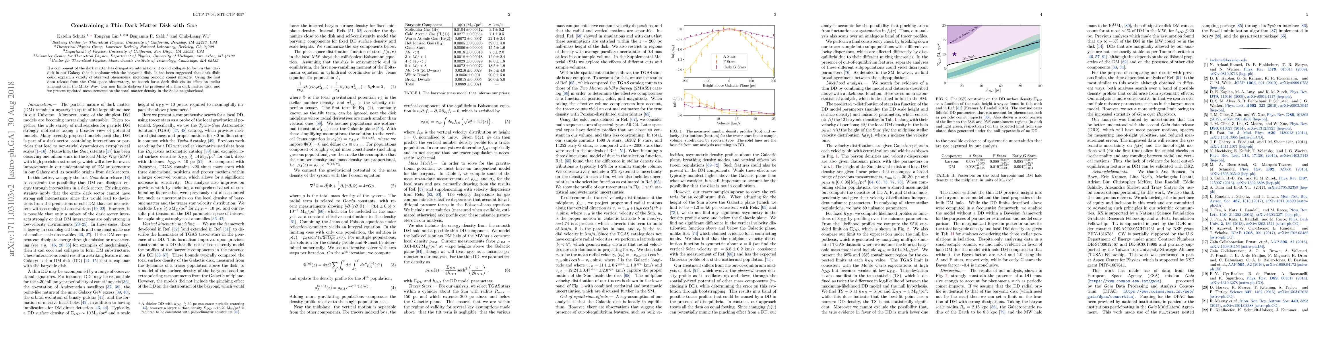 This paper uses Gaia data to search for a thin dark matter disk in the Milky Way, finding no evidence to support its existence and updating measurements on the total matter density in the Solar neighborhood. The results disfavor the presence of a dark disk that could explain periodic comet impacts.