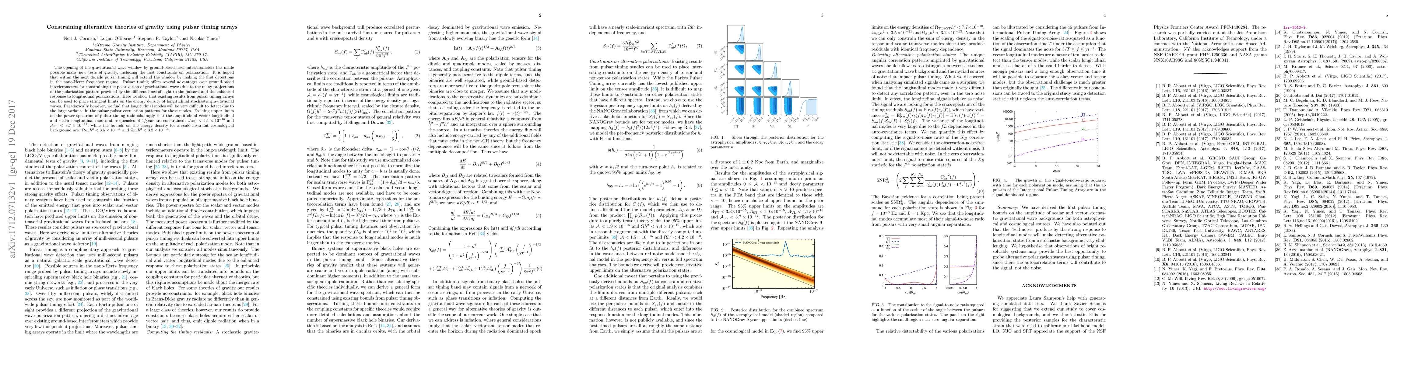 This paper demonstrates how pulsar timing arrays can constrain alternative theories of gravity by setting stringent limits on the energy density of longitudinal gravitational waves, despite the difficulty in detecting these modes due to high variance in pulsar-pulsar correlation patterns. The study finds upper limits on the amplitude and energy density of vector and scalar longitudinal modes at frequencies of 1/year.
