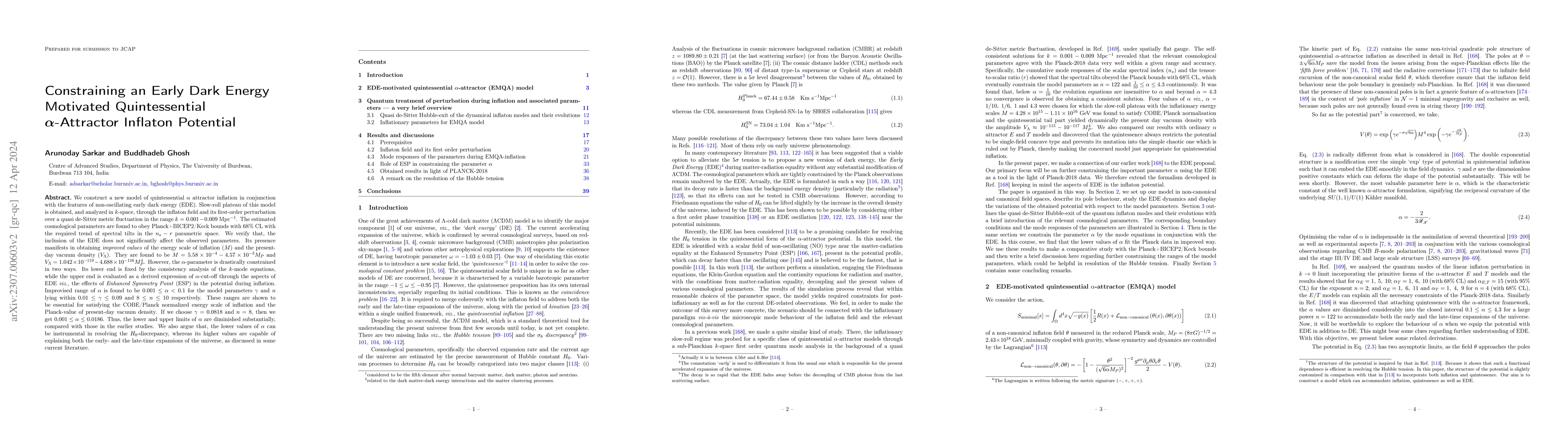 This research proposes a new quintessential $\alpha$ attractor inflation model integrating early dark energy features. It analyzes the slow-roll plateau in $k$-space and verifies the model's cosmological parameters against observational data, finding improved values for inflation's energy scale and vacuum density, while significantly constraining the $\alpha$-parameter range to $0.001\leq\alpha<0.1$.