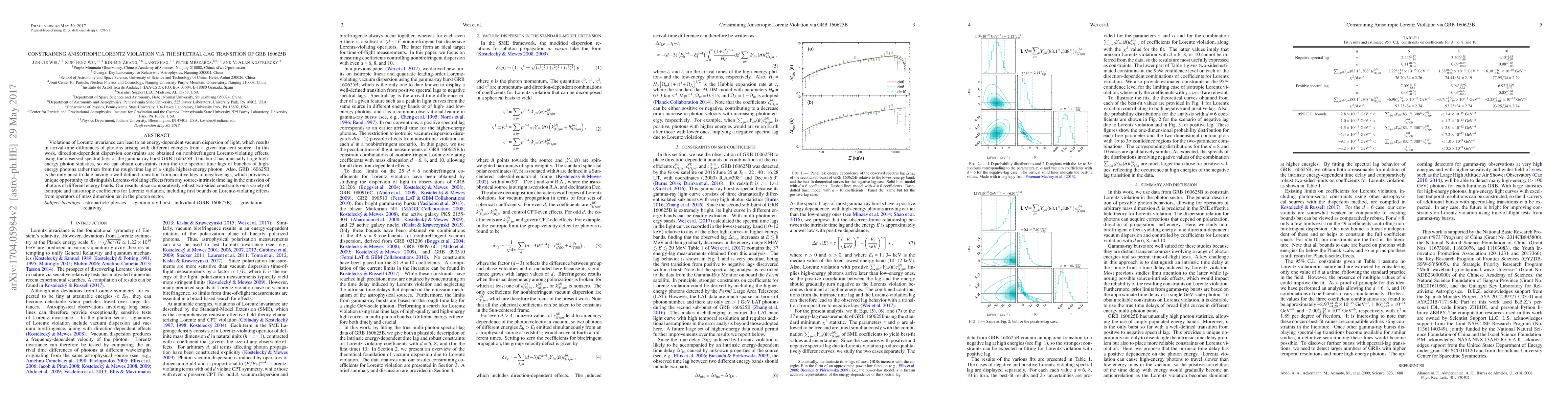 This paper constrains anisotropic Lorentz violation by analyzing the spectral lags of gamma-ray burst GRB 160625B, which provides a unique transition from positive to negative lags. The study derives robust bounds on both isotropic and anisotropic coefficients, including first limits on higher-dimensional operators affecting photon dispersion.