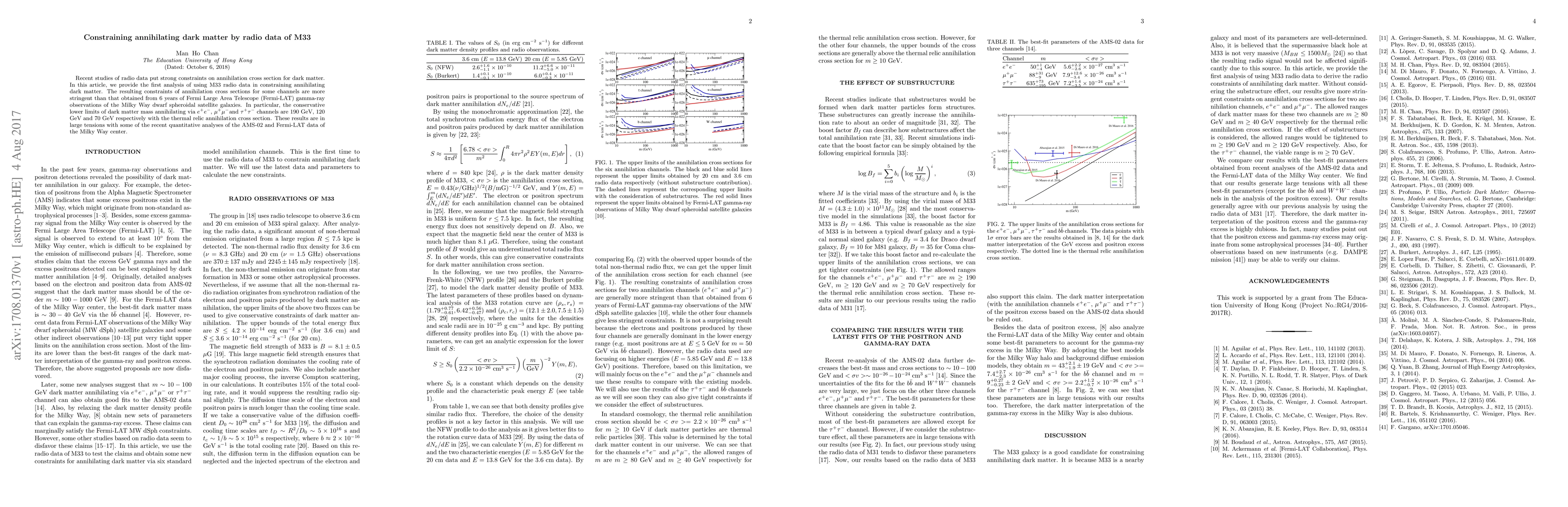 This study uses radio data from M33 to constrain annihilating dark matter, finding more stringent limits than previous gamma-ray observations of the Milky Way.