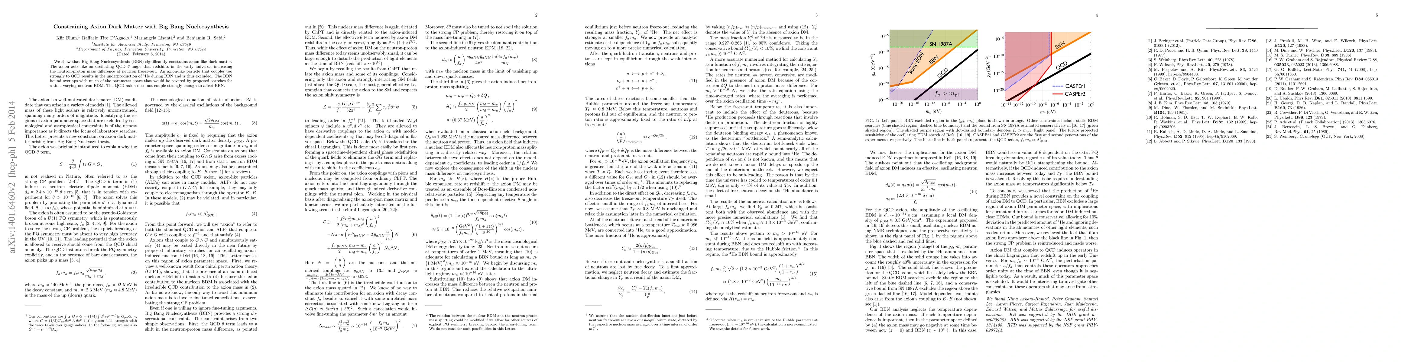 This paper demonstrates that Big Bang Nucleosynthesis (BBN) provides significant constraints on axion-like dark matter, which can alter the neutron-proton mass difference, leading to underproduction of helium-4 (4He) if the axion couples too strongly. The BBN constraints overlap with the parameter space targeted by searches for time-varying neutron electric dipole moments (EDMs).