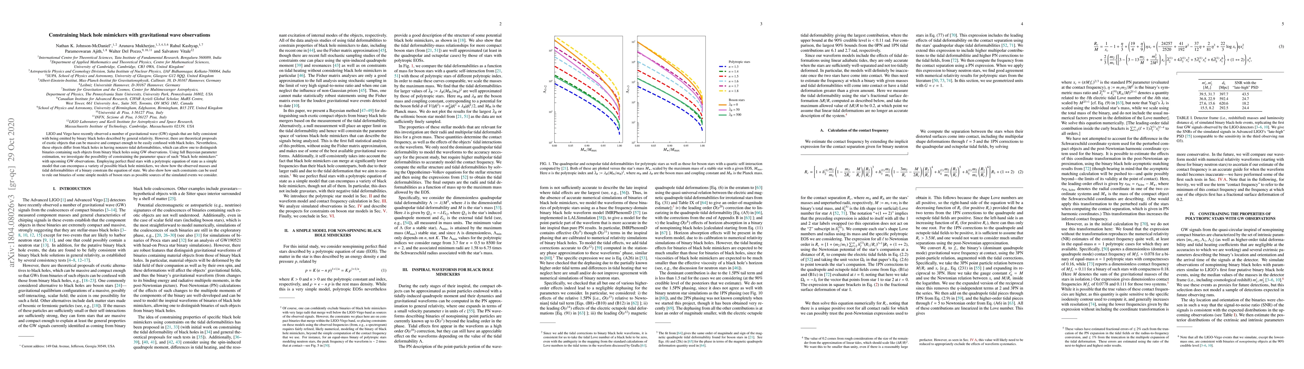 This paper uses gravitational wave observations from LIGO and Virgo to distinguish between binary black holes and "black hole mimickers" like perfect fluid stars. It demonstrates how tidal deformabilities can help constrain the parameter space of these mimickers, thereby ruling out some simple boson star models.