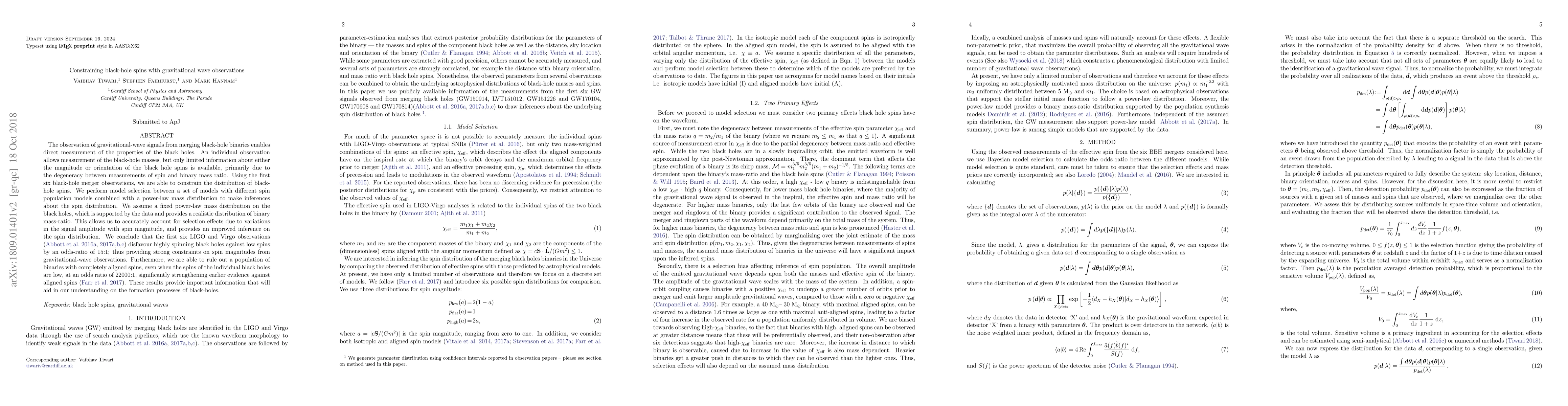This paper uses gravitational wave observations from merging black-hole binaries to constrain the distribution of black-hole spins, finding that low spins are more likely than highly spinning black holes. The study rules out a population of binaries with completely aligned spins, providing strong evidence against such alignments and aiding in understanding black-hole formation processes.