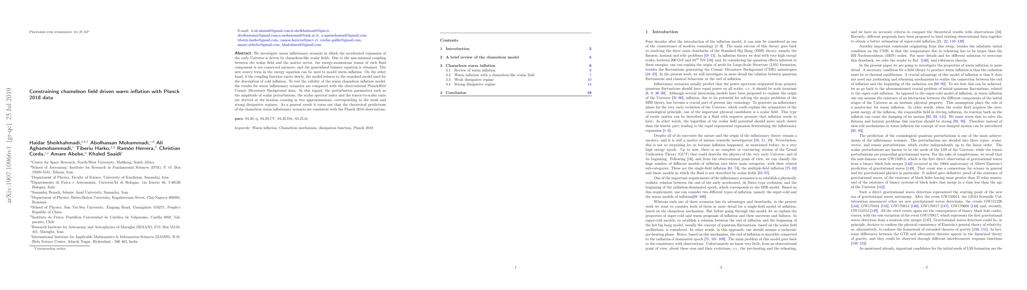 This paper explores a warm inflationary model driven by chameleon fields, deriving perturbation parameters and comparing them to Planck 2018 CMB data. The study finds that the theoretical predictions of this chameleon-driven warm inflation are consistent with observational results.