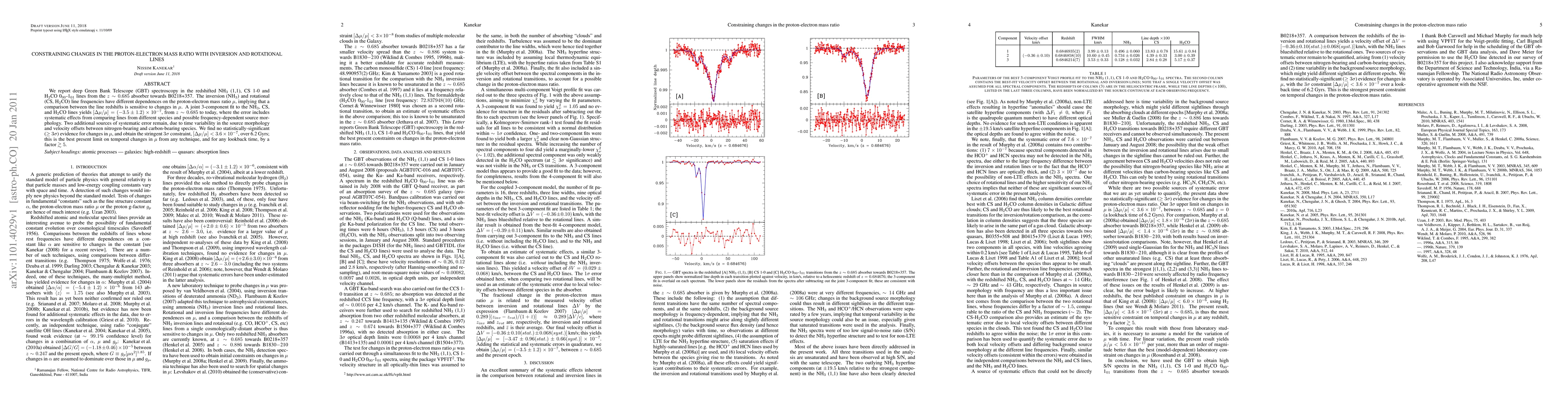 New study limits changes in proton-electron mass ratio to a 3.6 x 10^-7 constraint over 6.2 billion years, setting the best present limit on temporal changes in mu from any technique.