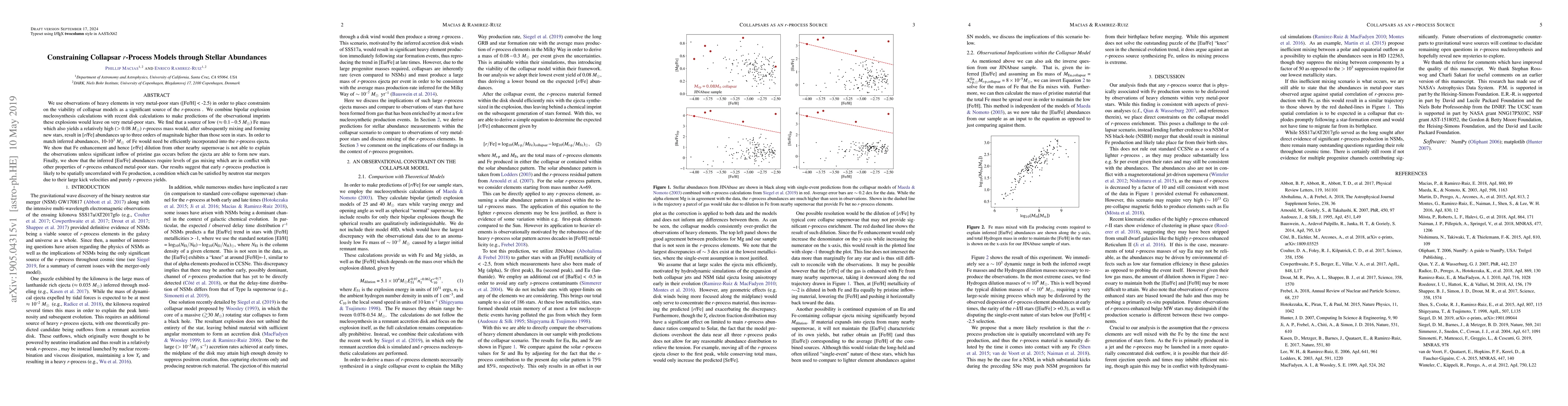 This paper constrains collapsar models as r-process sources by analyzing heavy element abundances in very metal-poor stars, finding that they cannot match observed [r/Fe] ratios unless excessive Fe is incorporated into r-process ejecta. It concludes that early r-process production is likely uncorrelated with Fe production, favoring neutron star mergers over collapsars.