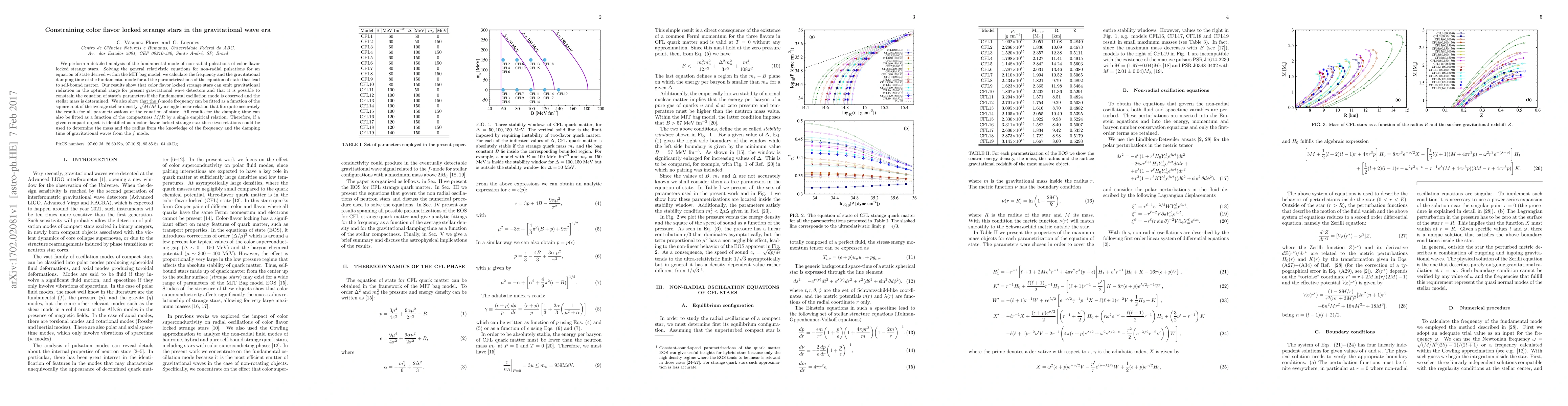 This paper analyzes the fundamental mode of non-radial pulsations in color flavor locked strange stars using relativistic equations and the MIT bag model. It finds that these stars can emit gravitational waves detectable by current detectors, allowing constraints on the equation of state parameters if observed.