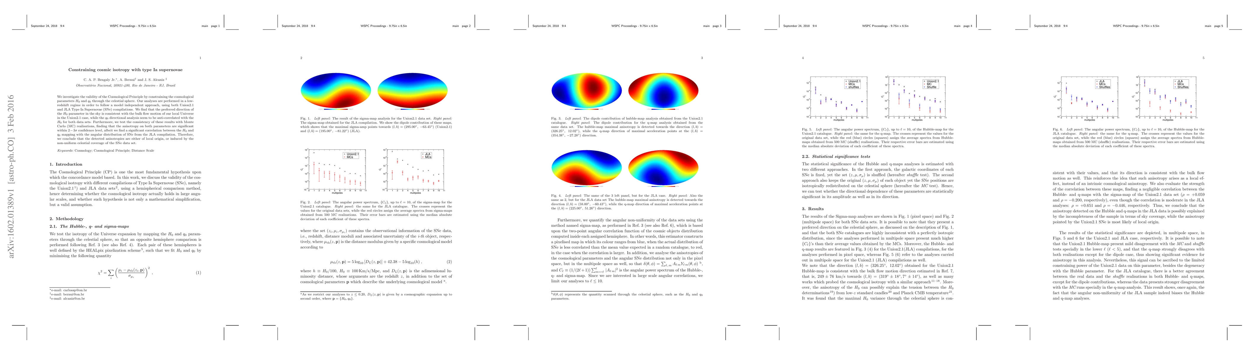 This paper examines the Cosmological Principle's validity using Type Ia Supernovae data, finding significant anisotropies in $H_0$ and $q_0$ parameters, suggesting either local effects or uneven data coverage as potential sources. The preferred $H_0$ direction aligns with local bulk flow, while $q_0$ shows anti-correlation.