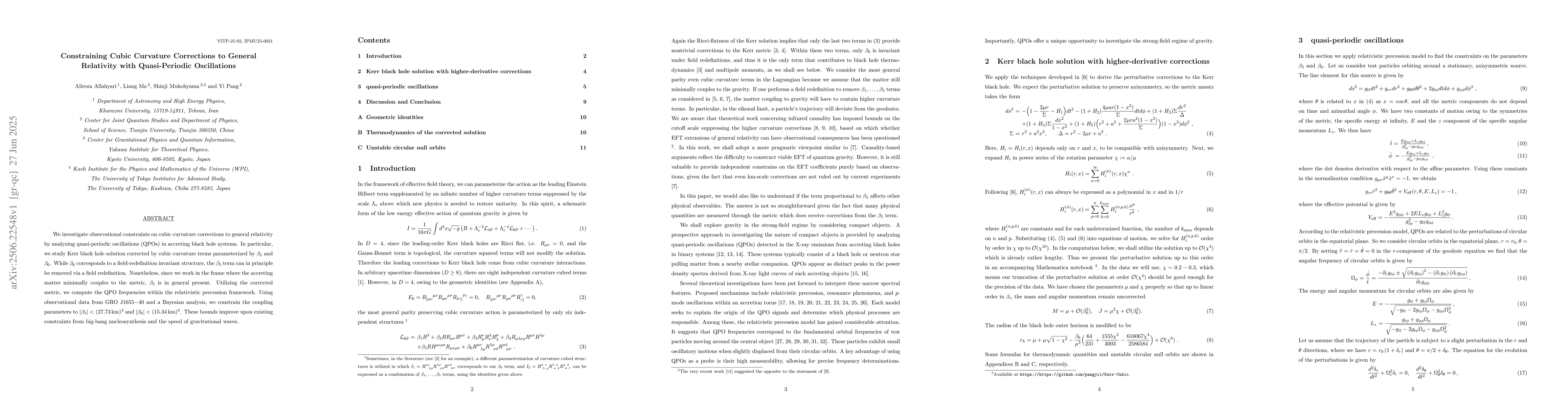 We investigate observational constraints on cubic curvature corrections to general relativity by analyzing quasi-periodic oscillations (QPOs) in accreting black hole systems. In particular, we study Kerr black hole solution corrected by cubic curvature terms parameterized by $\beta_5$ and $\beta_6$. While $\beta_6$ corresponds to a field-redefinition invariant structure, the $\beta_5$ term can in principle be removed via a field redefinition. Nonetheless, since we work in the frame where the accreting matter minimally couples to the metric, $\beta_5$ is in general present. Utilizing the corrected metric, we compute the QPO frequencies within the relativistic precession framework. Using observational data from GRO J1655$-$40 and a Bayesian analysis, we constrain the coupling parameters to $|\beta_5| < (27.73\,\mathrm{km})^4$ and $|\beta_6| < (15.34\,\mathrm{km})^4$. These bounds improve upon existing constraints from big-bang nucleosynthesis and the speed of gravitational waves.