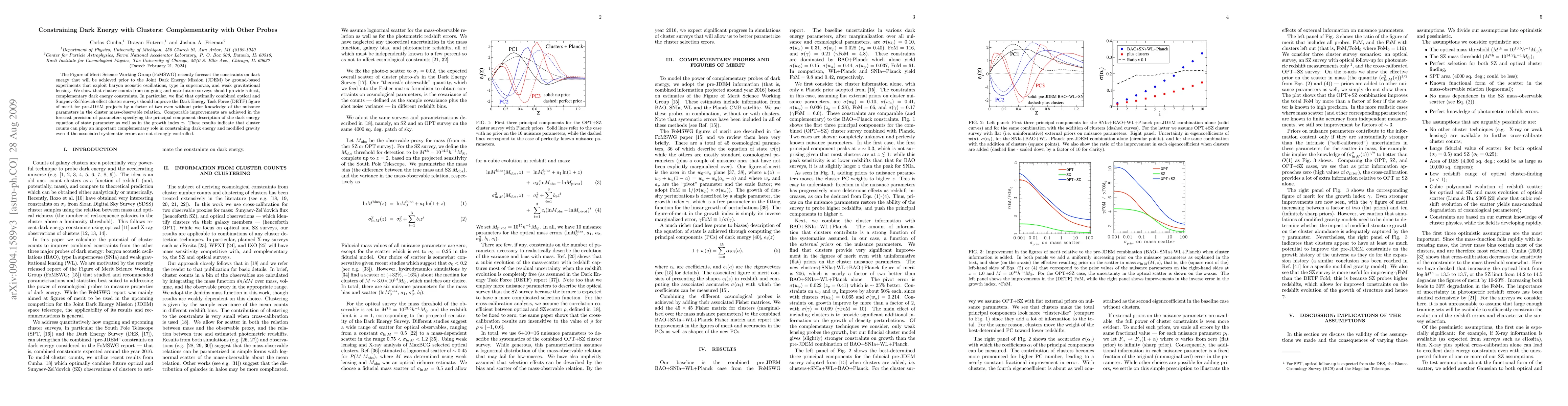 The Figure of Merit Science Working Group (FoMSWG) recently forecast the constraints on dark energy that will be achieved prior to the Joint Dark Energy Mission (JDEM) by ground-based experiments that exploit baryon acoustic oscillations, type Ia supernovae, and weak gravitational lensing. We show that cluster counts from on-going and near-future surveys should provide robust, complementary dark energy constraints. In particular, we find that optimally combined optical and Sunyaev-Zel'dovich effect cluster surveys should improve the Dark Energy Task Force (DETF) figure of merit for pre-JDEM projects by a factor of two even without prior knowledge of the nuisance parameters in the cluster mass-observable relation. Comparable improvements are achieved in the forecast precision of parameters specifying the principal component description of the dark energy equation of state parameter as well as in the growth index gamma. These results indicate that cluster counts can play an important complementary role in constraining dark energy and modified gravity even if the associated systematic errors are not strongly controlled.