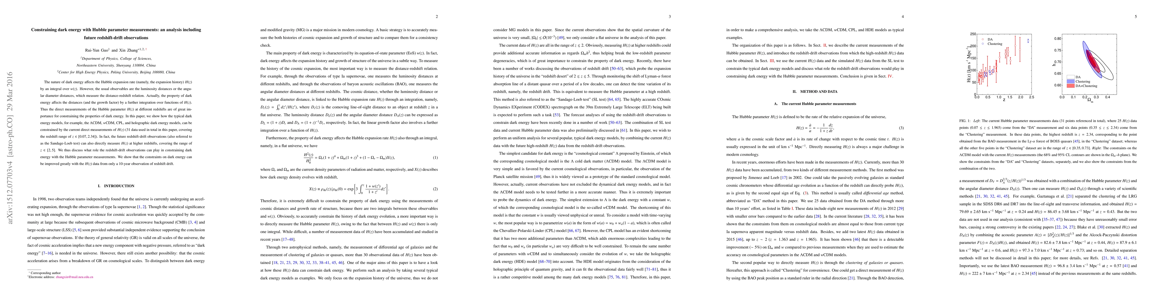 This paper investigates the constraints on dark energy models, such as $\Lambda$CDM and $w$CDM, using current and future direct measurements of the Hubble parameter $H(z)$. It demonstrates that redshift-drift observations can significantly improve these constraints, especially with data from a 10-year observation.