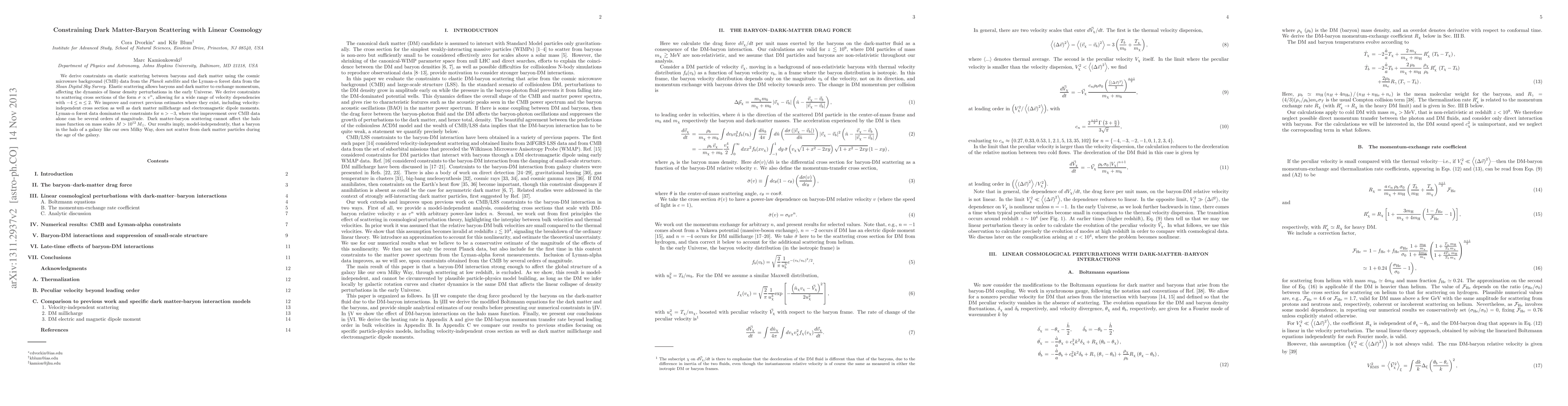 This paper derives new constraints on the elastic scattering between baryons and dark matter using CMB and Lyman-alpha forest data, showing significant improvements over previous estimates. The results imply that baryons in galaxies like the Milky Way do not scatter from dark matter particles over the galaxy's lifetime.