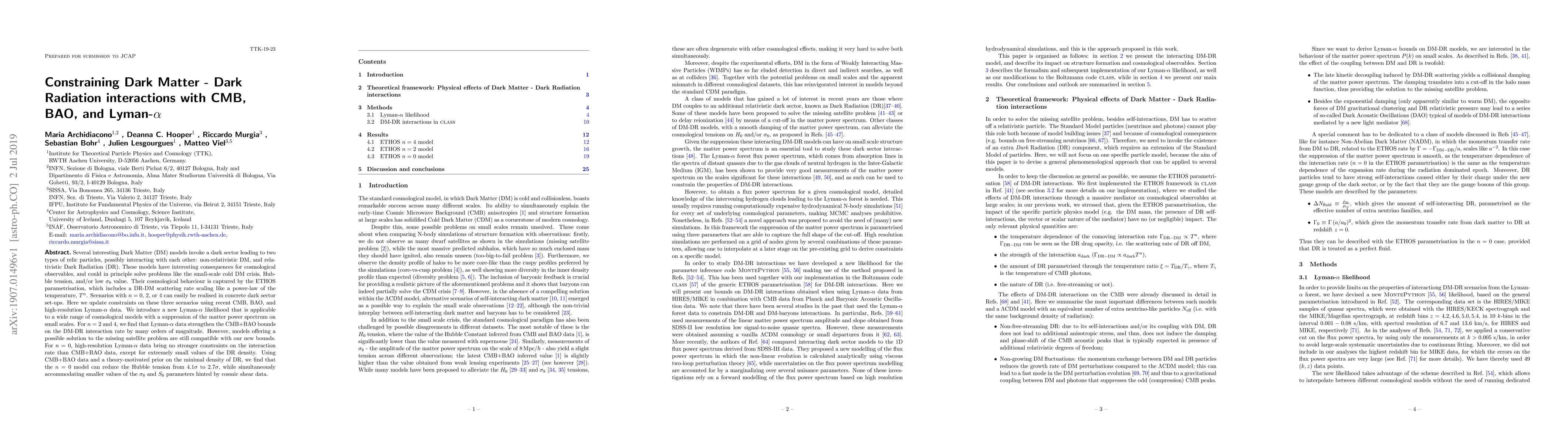 Several interesting Dark Matter (DM) models invoke a dark sector leading to two types of relic particles, possibly interacting with each other: non-relativistic DM, and relativistic Dark Radiation (DR). These models have interesting consequences for cosmological observables, and could in principle solve problems like the small-scale cold DM crisis, Hubble tension, and/or low $\sigma_8$ value. Their cosmological behaviour is captured by the ETHOS parametrisation, which includes a DR-DM scattering rate scaling like a power-law of the temperature, $T^n$. Scenarios with $n=0$, $2$, or $4$ can easily be realised in concrete dark sector set-ups. Here we update constraints on these three scenarios using recent CMB, BAO, and high-resolution Lyman-$\alpha$ data. We introduce a new Lyman-$\alpha$ likelihood that is applicable to a wide range of cosmological models with a suppression of the matter power spectrum on small scales. For $n=2$ and $4$, we find that Lyman-$\alpha$ data strengthen the CMB+BAO bounds on the DM-DR interaction rate by many orders of magnitude. However, models offering a possible solution to the missing satellite problem are still compatible with our new bounds. For $n=0$, high-resolution Lyman-$\alpha$ data bring no stronger constraints on the interaction rate than CMB+BAO data, except for extremely small values of the DR density. Using CMB+BAO data and a theory-motivated prior on the minimal density of DR, we find that the $n=0$ model can reduce the Hubble tension from $4.1\sigma$ to $2.7\sigma$, while simultaneously accommodating smaller values of the $\sigma_8$ and $S_8$ parameters hinted by cosmic shear data.