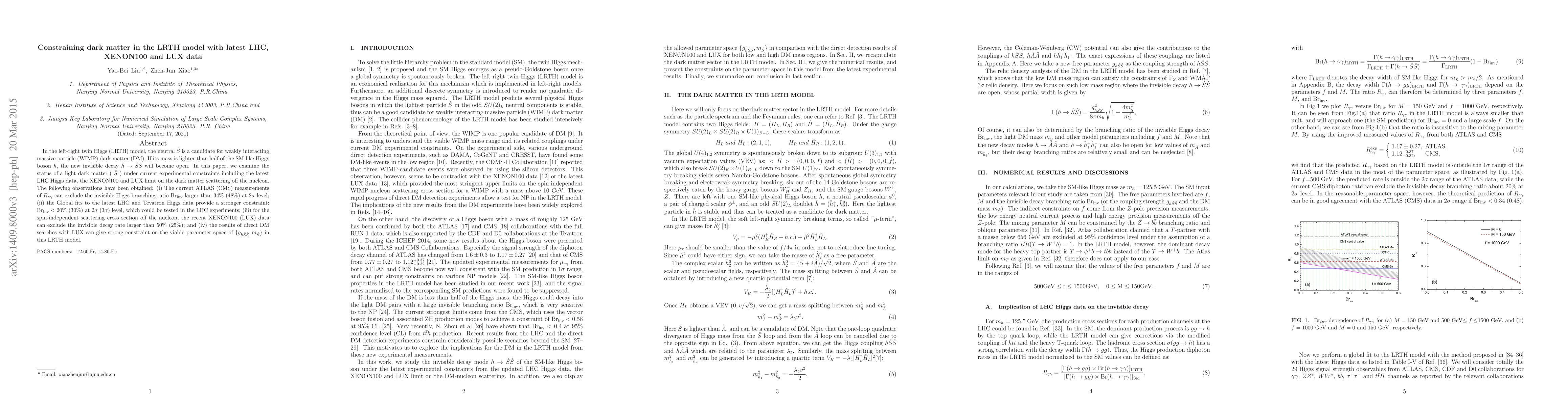 Researchers analyzed LHC, XENON100, and LUX data to constrain dark matter in the left-right twin Higgs model, finding strong limits on the invisible decay of the SM-like Higgs boson.