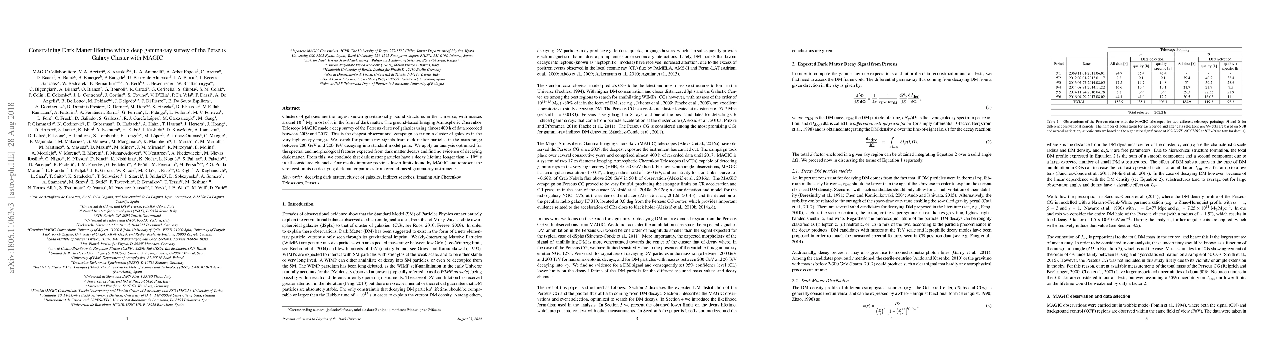 The MAGIC telescope conducted a deep gamma-ray survey of the Perseus Galaxy Cluster, finding no evidence of dark matter particles decaying in the mass range of 200 GeV to 200 TeV. This leads to the conclusion that dark matter particles have a decay lifetime longer than $\sim10^{26}$~s, setting the strongest limits on decaying dark matter from ground-based gamma-ray instruments.