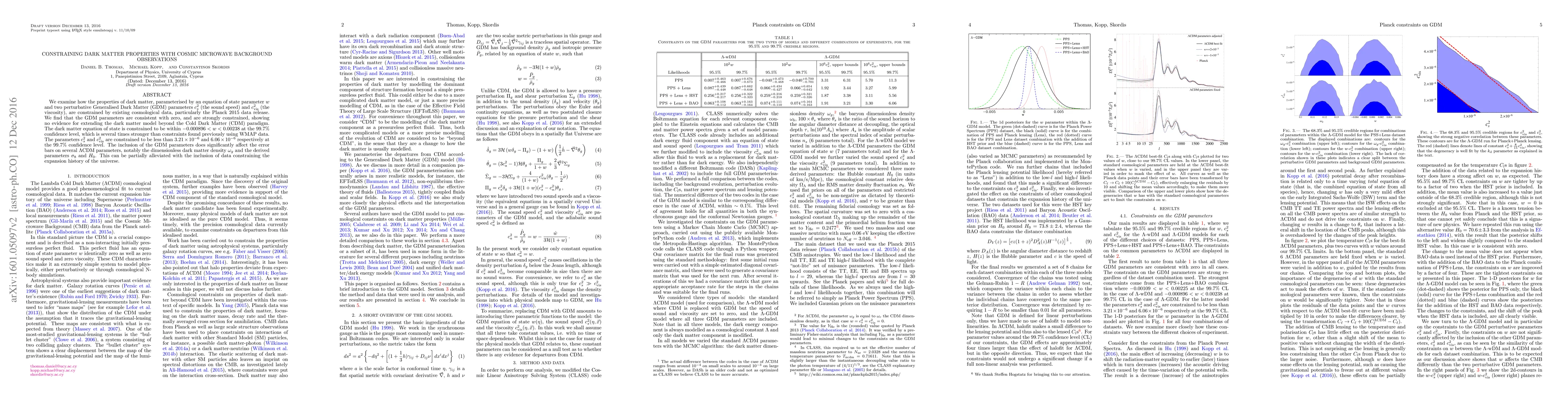 Researchers constrained dark matter properties using Cosmic Microwave Background observations, finding no evidence for extending the CDM paradigm and confirming tight bounds on equation of state and viscosity parameters.