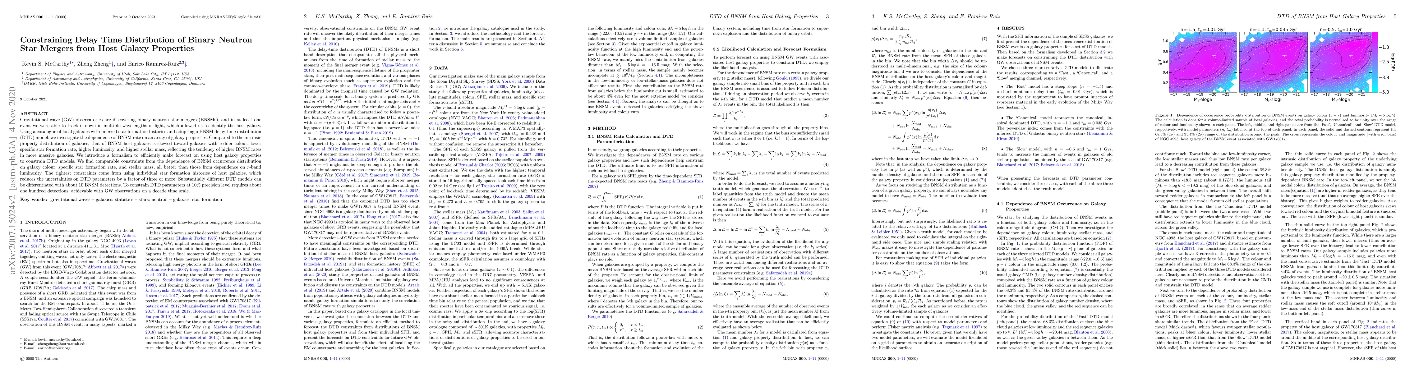 Gravitational wave (GW) observatories are discovering binary neutron star mergers (BNSMs), and in at least one event we were able to track it down in multiple wavelengths of light, which allowed us to identify the host galaxy. Using a catalogue of local galaxies with inferred star formation histories and adopting a BNSM delay time distribution (DTD) model, we investigate the dependence of BNSM rate on an array of galaxy properties. Compared to the intrinsic property distribution of galaxies, that of BNSM host galaxies is skewed toward galaxies with redder colour, lower specific star formation rate, higher luminosity, and higher stellar mass, reflecting the tendency of higher BNSM rates in more massive galaxies. We introduce a formalism to efficiently make forecast on using host galaxy properties to constrain DTD models. We find comparable constraints from the dependence of BNSM occurrence distribution on galaxy colour, specific star formation rate, and stellar mass, all better than those from dependence on $r$-band luminosity. The tightest constraints come from using individual star formation histories of host galaxies, which reduces the uncertainties on DTD parameters by a factor of three or more. Substantially different DTD models can be differentiated with about 10 BNSM detections. To constrain DTD parameters at 10\% precision level requires about one hundred detections, achievable with GW observations on a decade time scale.