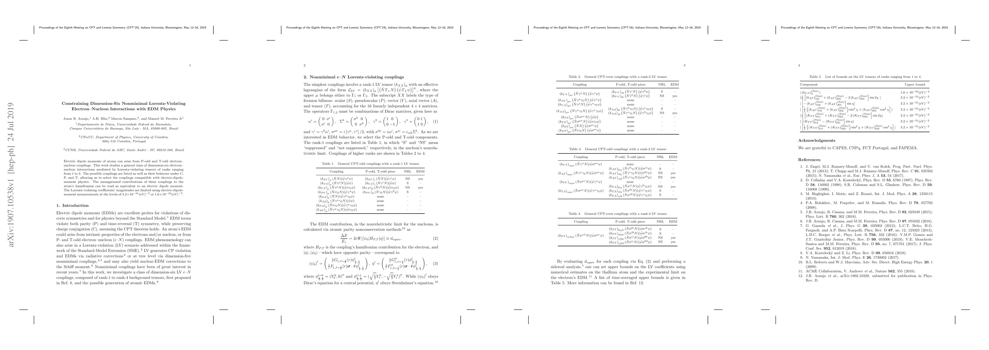 Electric dipole moments of atoms can arise from P-odd and T-odd electron--nucleon couplings. This work studies a general class of dimension-six electron--nucleon interactions mediated by Lorentz-violating tensors of ranks ranging from $1$ to $4$. The possible couplings are listed as well as their behavior under C, P, and T, allowing us to select the couplings compatible with electric-dipole-moment physics. The unsuppressed contributions of these couplings to the atom's hamiltonian can be read as equivalent to an electric dipole moment. The Lorentz-violating coefficients' magnitudes are limited using electric-dipole-moment measurements at the levels of $3.2\times10^{-31}\text{(eV)}^{-2}$ or $1.6\times10^{-33}\text{(eV)}^{-2}$.