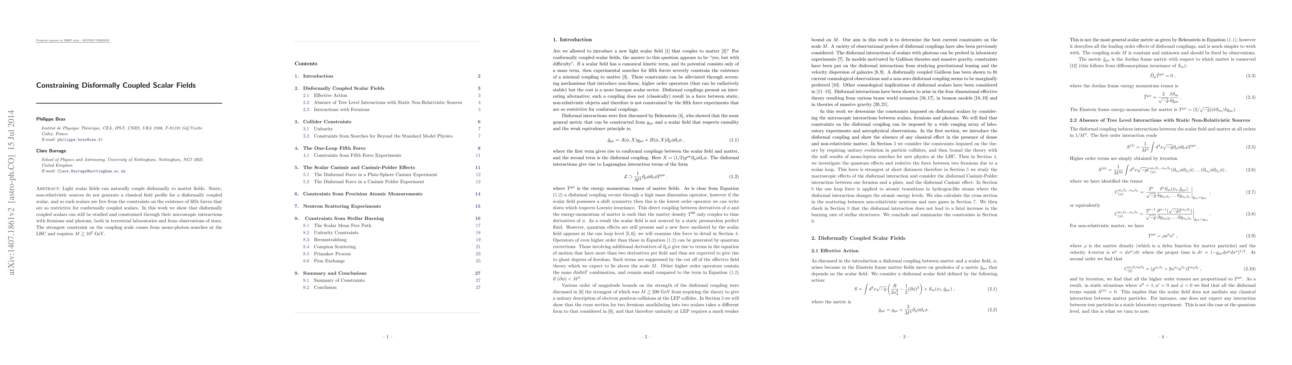 This paper explores the constraints on disformally coupled scalar fields, which can evade classical fifth force constraints due to their unique coupling mechanism. It demonstrates that these fields can still be constrained through their interactions with fermions and photons, with the strongest constraint from LHC mono-photon searches requiring a coupling scale of $M \gtrsim 10^2 \mbox{ GeV}$.