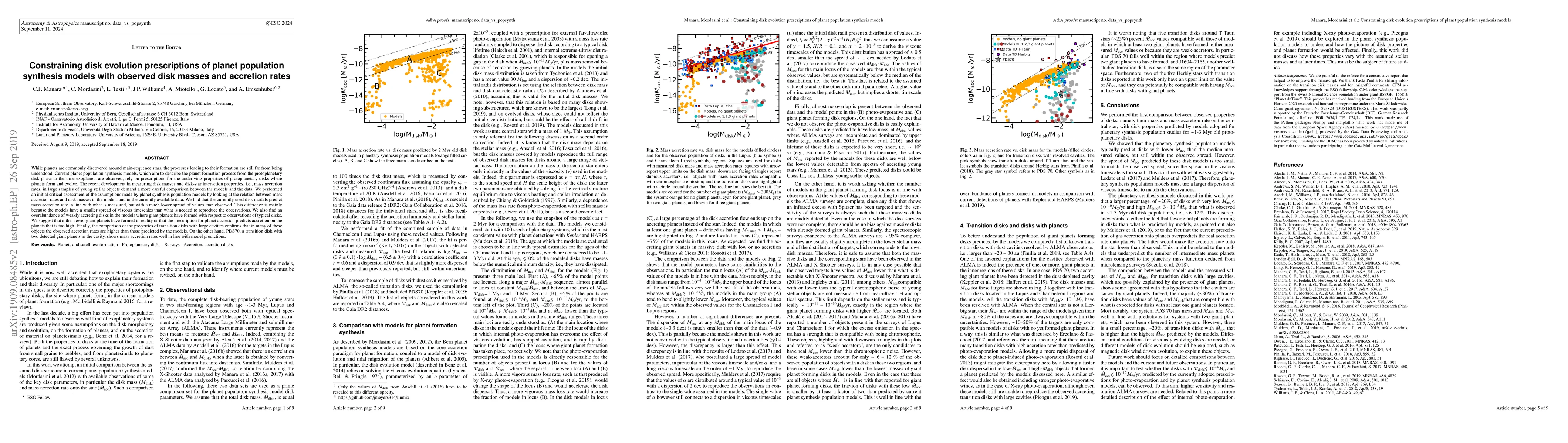 New study assesses planet formation models using disk masses and accretion rates, finding discrepancies between predicted and observed values, with some transition disks showing higher-than-predicted accretion rates.