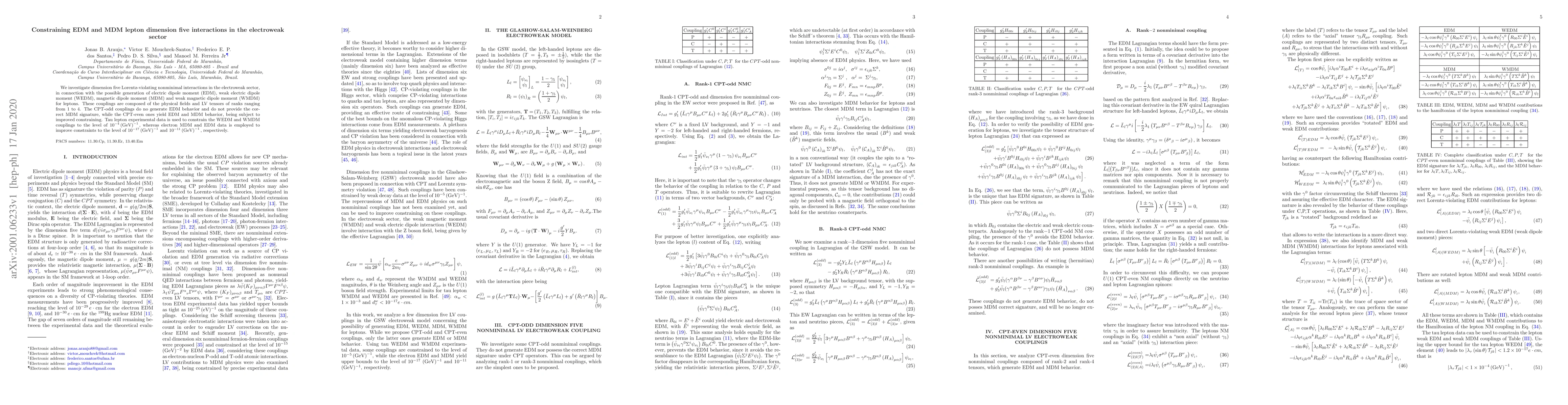 We investigate dimension five Lorentz-violating nonminimal interactions in the electroweak sector, in connection with the possible generation of electric dipole moment (EDM), weak electric dipole moment (WEDM), magnetic dipole moment (MDM) and weak magnetic dipole moment (WMDM) for leptons. These couplings are composed of the physical fields and LV tensors of ranks ranging from 1 to 4. The CPT-odd couplings do no generate EDM\ behavior and do not provide the correct MDM\ signature, while the CPT-even ones yield EDM and MDM\ behavior, being subject to improved constraining. Tau lepton experimental data is used to constrain the WEDM\ and WMDM couplings to the level of $10^{-4}\left( \text{GeV}\right) ^{-1},$ whereas electron MDM and EDM data is employed to improve constraints to the level of $10^{-17}\left( \text{GeV}\right) ^{-1}$ and $10^{-11}\left( \text{GeV}\right) ^{-1},$ respectively.
