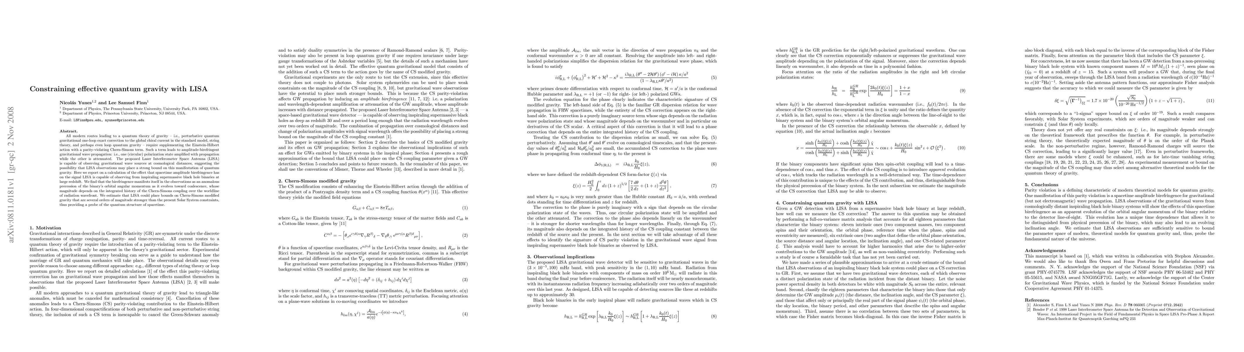 This paper explores how the Laser Interferometer Space Antenna (LISA) could constrain effective quantum gravity by detecting spacetime amplitude birefringence, a phenomenon predicted by various quantum gravity theories. The study finds that LISA may observe an anomalous precession in the orbital angular momentum of inspiraling supermassive black hole binaries, which could provide strong bounds on the Chern-Simons modified gravity term, surpassing current Solar System constraints.