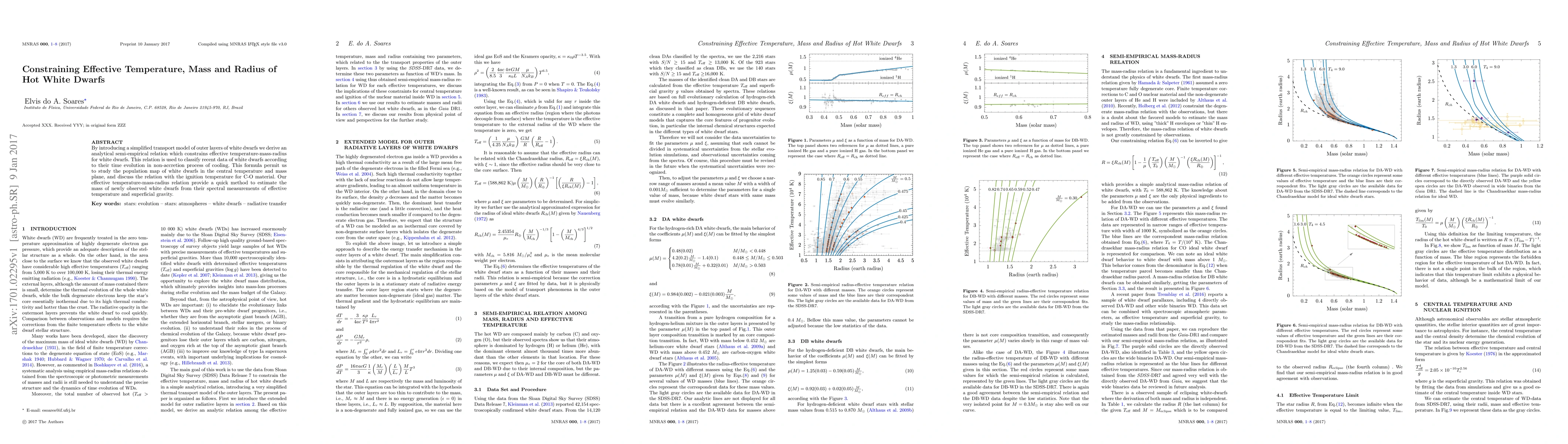 This paper develops an analytical semi-empirical relation to constrain the effective temperature, mass, and radius of hot white dwarfs using a simplified transport model. It classifies recent white dwarf data and provides a quick method for estimating the mass of newly observed white dwarfs from spectral measurements.