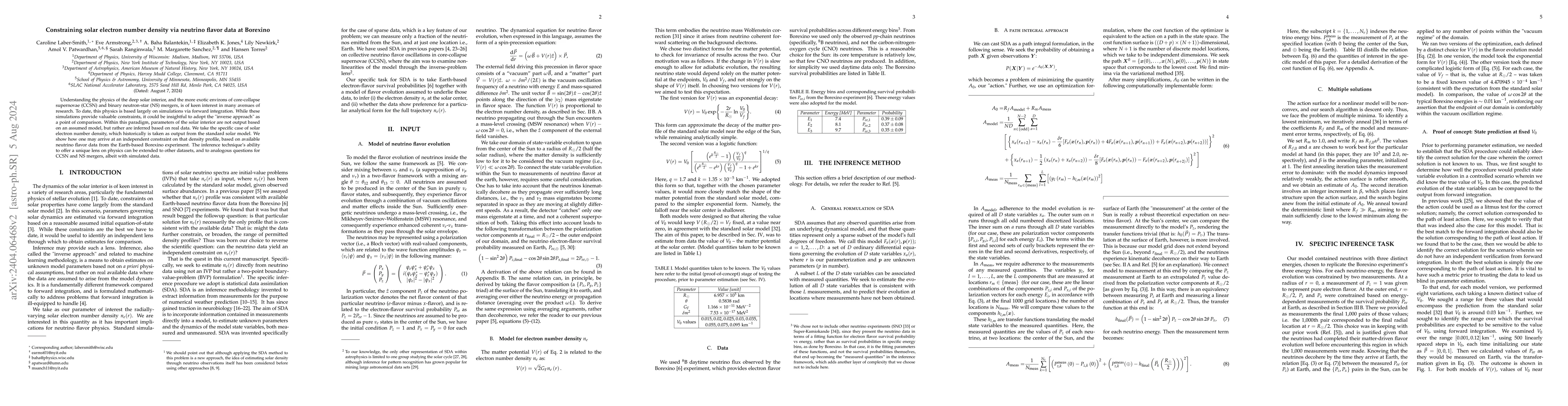This paper uses statistical data assimilation to analyze neutrino flavor transformations from the Sun, aiming to infer the radially-varying electron number density $n_e(r)$. The study seeks to determine if neutrino data can provide independent constraints on solar electron number density, complementing current estimates from the standard solar model.