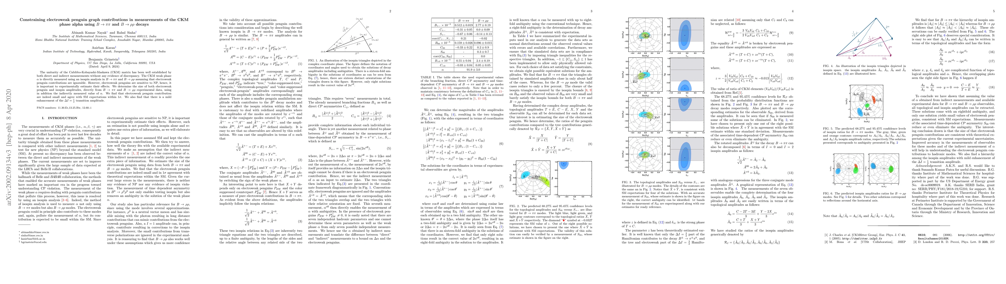 The unitarity of the Cabibbo-Kobayashi-Maskawa (CKM) matrix has been well established by both direct and indirect measurements without any evidence of discrepancy. The CKM weak phase $\alpha$ is directly measured using an isospin analysis in $B\rightarrow \pi\pi$ and $B\to \rho\rho$ assuming that electroweak penguin contributions are ignorable. However, electroweak penguins are sensitive to NP, hence, it is important to experimentally estimate their effects. We determine the size of both electroweak penguin and isospin amplitudes, directly from $B\rightarrow \pi\pi$ and $B\to \rho\rho$ experimental data, using in addition the indirectly measured value of $\alpha$. We find that electroweak penguin contribution are indeed small and agree with SM expectations within $1\sigma$. We also find that there is a mild enhancement of the $\Delta I=\tfrac{1}{2}$ transition amplitude.