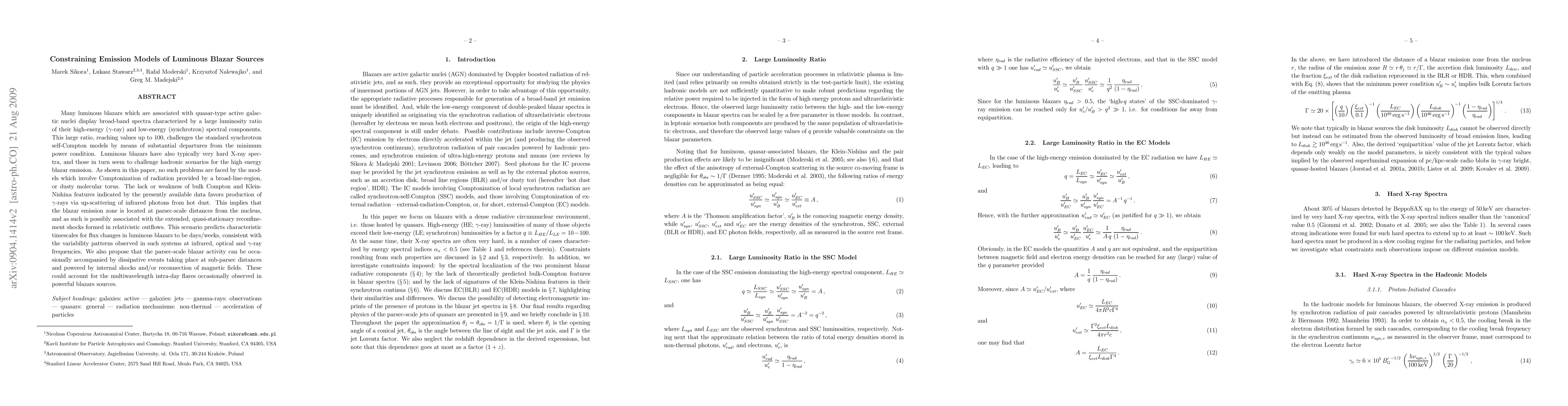Many luminous blazars which are associated with quasar-type active galactic nuclei display broad-band spectra characterized by a large luminosity ratio of their high-energy (gamma-ray) and low-energy (synchrotron) spectral components. This large ratio, reaching values up to 100, challenges the standard synchrotron self-Compton models by means of substantial departures from the minimum power condition. Luminous blazars have also typically very hard X-ray spectra, and those in turn seem to challenge hadronic scenarios for the high energy blazar emission. As shown in this paper, no such problems are faced by the models which involve Comptonization of radiation provided by a broad line-region, or dusty molecular torus. The lack or weakness of bulk Compton and Klein-Nishina features indicated by the presently available data favors production of gamma-rays via up-scattering of infrared photons from hot dust. This implies that the blazar emission zone is located at parsec-scale distances from the nucleus, and as such is possibly associated with the extended, quasi-stationary reconfinement shocks formed in relativistic outflows. This scenario predicts characteristic timescales for flux changes in luminous blazars to be days/weeks, consistent with the variability patterns observed in such systems at infrared, optical and gamma-ray frequencies. We also propose that the parsec-scale blazar activity can be occasionally accompanied by dissipative events taking place at sub-parsec distances and powered by internal shocks and/or reconnection of magnetic fields. These could account for the multiwavelength intra-day flares occasionally observed in powerful blazars sources.