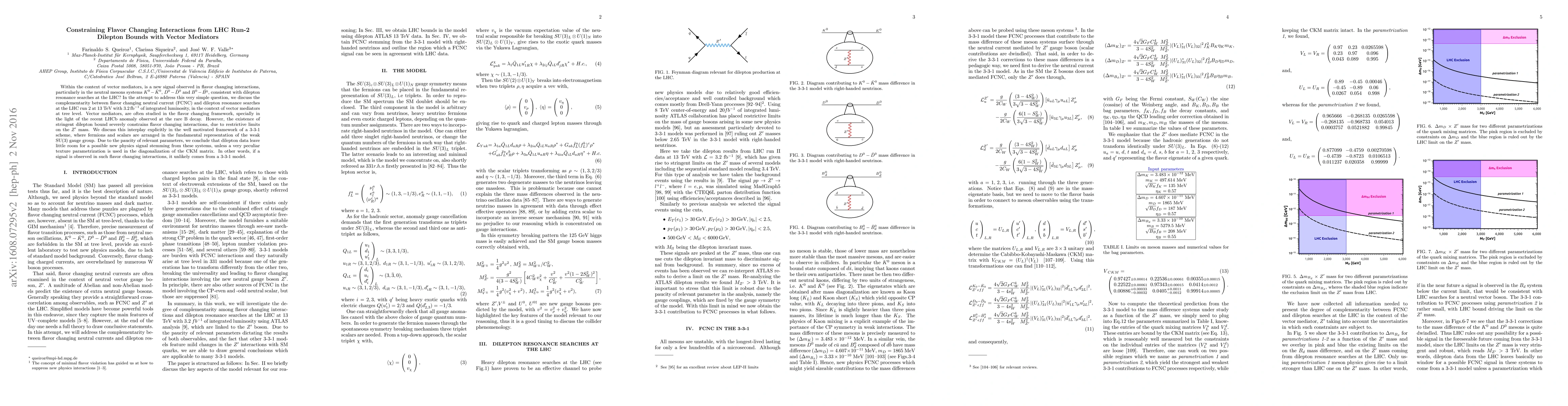 Within the context of vector mediators, is a new signal observed in flavor changing interactions, particularly in the neutral mesons systems $K^{0}-\bar{K}^{0}$, $D^{0}-\bar{D}^{0}$ and $B^0-\bar{B^0}$, consistent with dilepton resonance searches at the LHC? In the attempt to address this very simple question, we discuss the complementarity between flavor changing neutral current (FCNC) and dilepton resonance searches at the LHC run 2 at $13$TeV with $3.2\, {\rm fb^{-1}}$ of integrated luminosity, in the context of vector mediators at tree level. Vector mediators, are often studied in the flavor changing framework, specially in the light of the recent LHCb anomaly observed at the rare B decay. However, the existence of stringent dilepton bound severely constrains flavor changing interactions, due to restrictive limits on the $Z^{\prime}$ mass. We discuss this interplay explicitly in the well motivated framework of a 3-3-1 scheme, where fermions and scalars are arranged in the fundamental representation of the weak SU(3) gauge group. Due to the paucity of relevant parameters, we conclude dilepton data leave little room for a possible new physics signal stemming from these systems, unless a very peculiar texture parametrization is used in the diagonalization of the CKM matrix. In other words, if a signal is observed in such flavor changing interactions, it is unlikely comes from a 3-3-1 model.