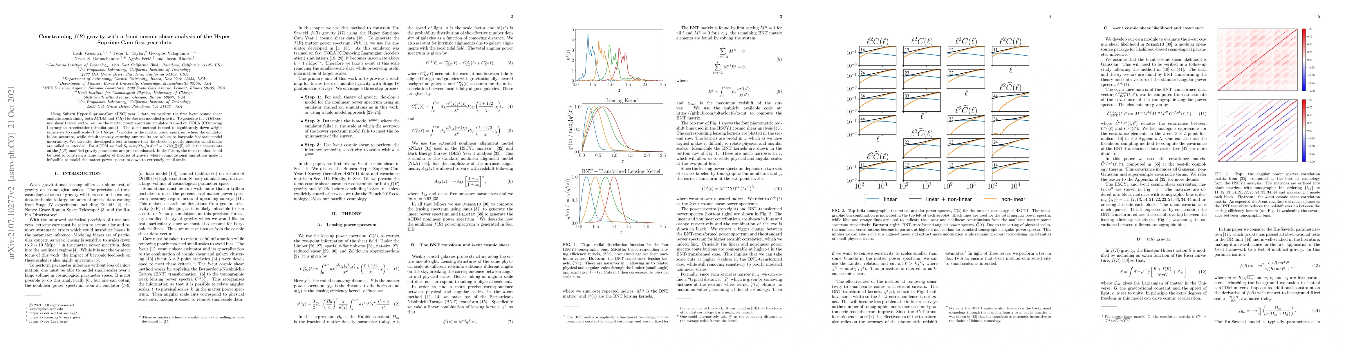 This paper uses Subaru Hyper Suprime-Cam year 1 data to perform a $k$-cut cosmic shear analysis, constraining both $\Lambda$CDM and $f(R)$ modified gravity. The $k$-cut method minimizes errors from small-scale inaccuracies, yielding $S_8 = 0.789 \pm 0.039$ for $\Lambda$CDM, while $f(R)$ constraints remain prior dominated.