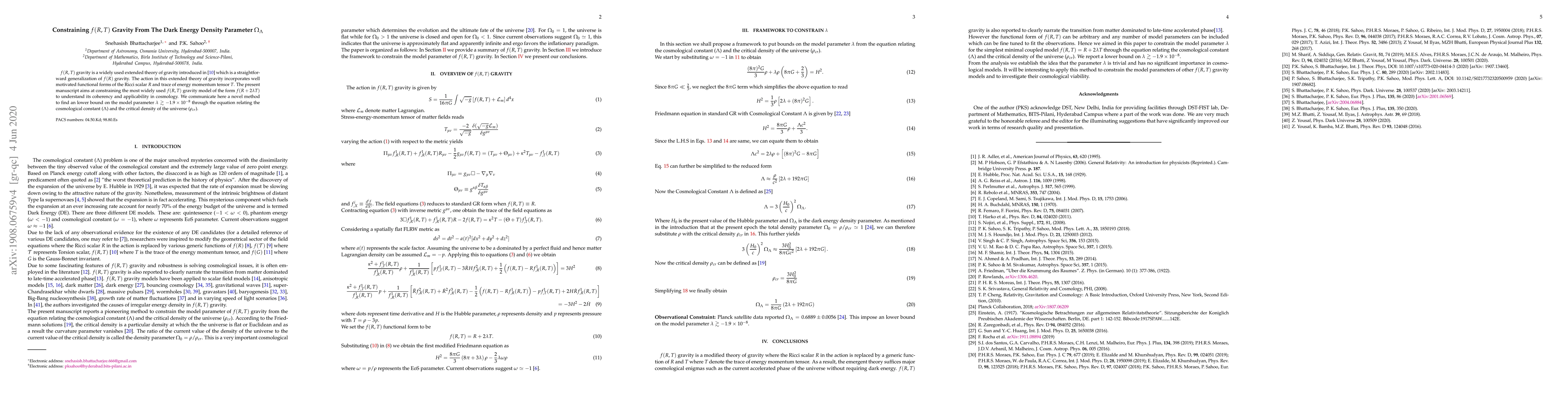 This paper explores the $f(R,T)$ gravity model, a generalization of $f(R)$ gravity, to constrain its applicability in cosmology. The authors derive a lower bound for the model parameter $\lambda$ of approximately $-1.9 \times 10^{-8}$ using the relationship between the dark energy density parameter $\Omega_{\Lambda}$ and the critical density of the universe.