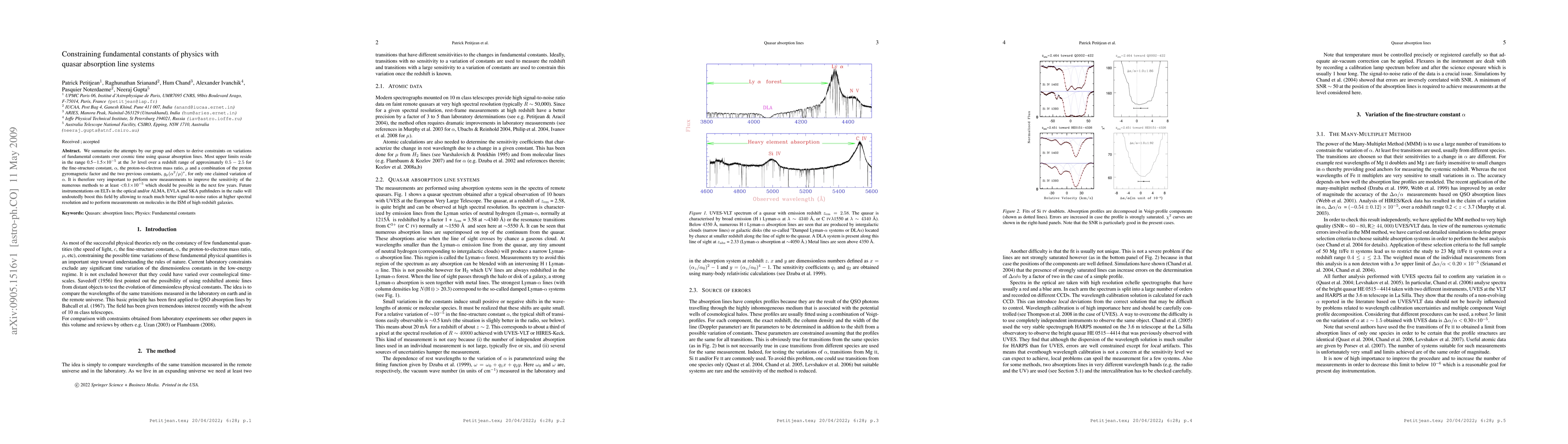 Researchers aim to improve the sensitivity of measuring fundamental constants in physics using quasar absorption lines, with current limits set at 0.5-1.5x10^-5, and new instruments expected to reach better signal-to-noise ratios.