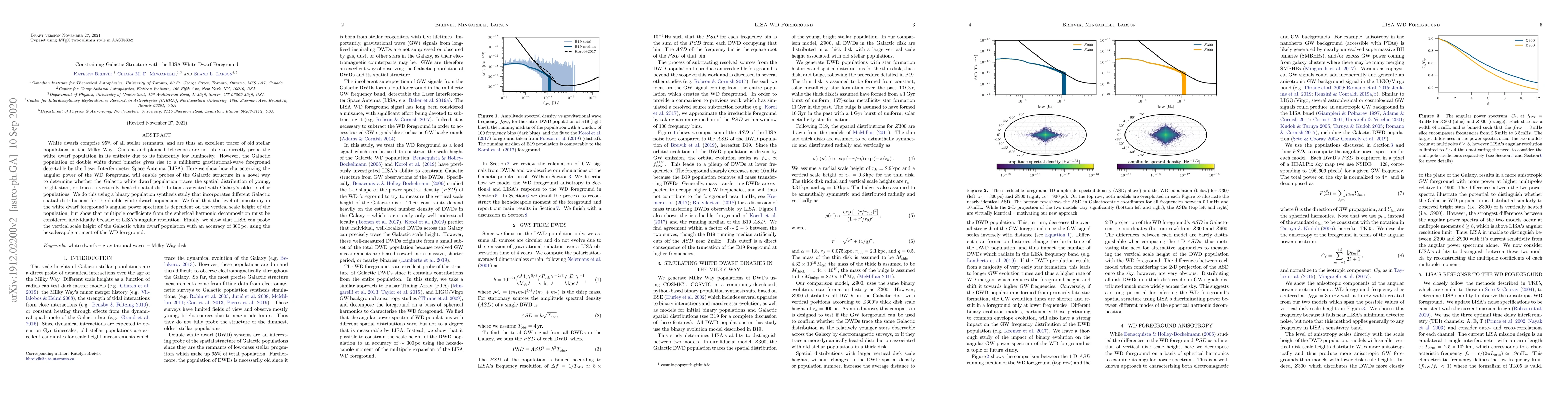 This paper demonstrates how the gravitational-wave foreground from double white dwarf binaries, detectable by LISA, can be used to constrain the Galactic structure and measure the vertical scale height of the Milky Way's oldest stellar populations. The study reveals that LISA's angular power spectrum of this foreground is highly sensitive to the vertical distribution of these white dwarfs, allowing for precise measurements within a range of 50 pc-200 pc.