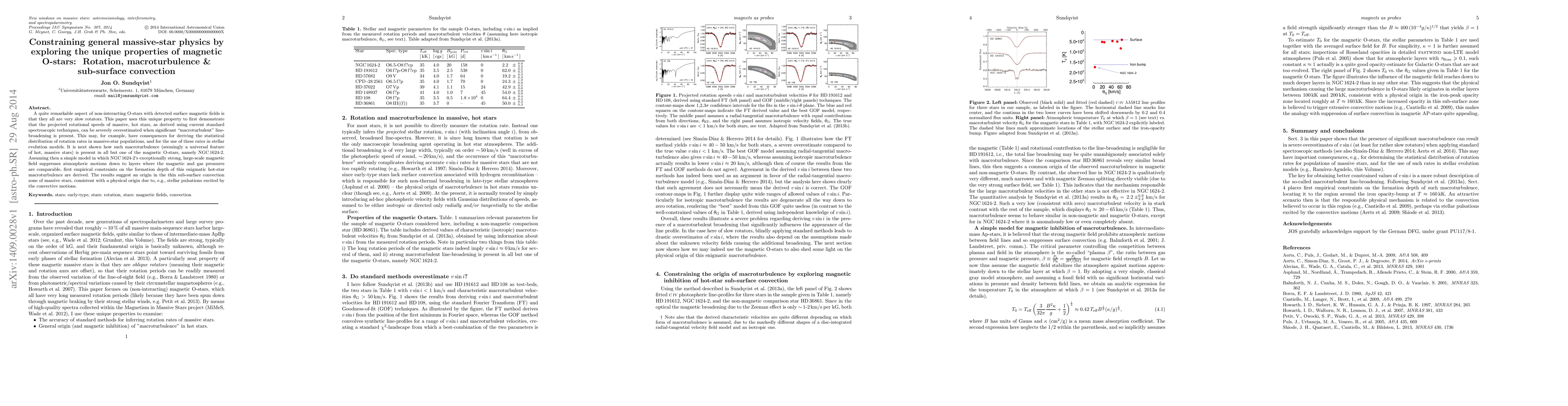 A quite remarkable aspect of non-interacting O-stars with detected surface magnetic fields is that they all are very slow rotators. This paper uses this unique property to first demonstrate that the projected rotational speeds of massive, hot stars, as derived using current standard spectroscopic techniques, can be severely overestimated when significant "macroturbulent" line-broadening is present. This may, for example, have consequences for deriving the statistical distribution of rotation rates in massive-star populations, and for the use of these rates in stellar evolution models. It is next shown how such macroturbulence (seemingly a universal feature of hot, massive stars) is present in all but one of the magnetic O-stars, namely NGC 1624-2. Assuming then a simple model in which NGC 1624-2's exceptionally strong, large-scale magnetic field suppresses atmospheric motions down to layers where the magnetic and gas pressures are comparable, first empirical constraints on the formation depth of this enigmatic hot-star macroturbulence are derived. The results suggest an origin in the thin sub-surface convection zone of massive stars, consistent with a physical origin due to, e.g., stellar pulsations excited by the convective motions.