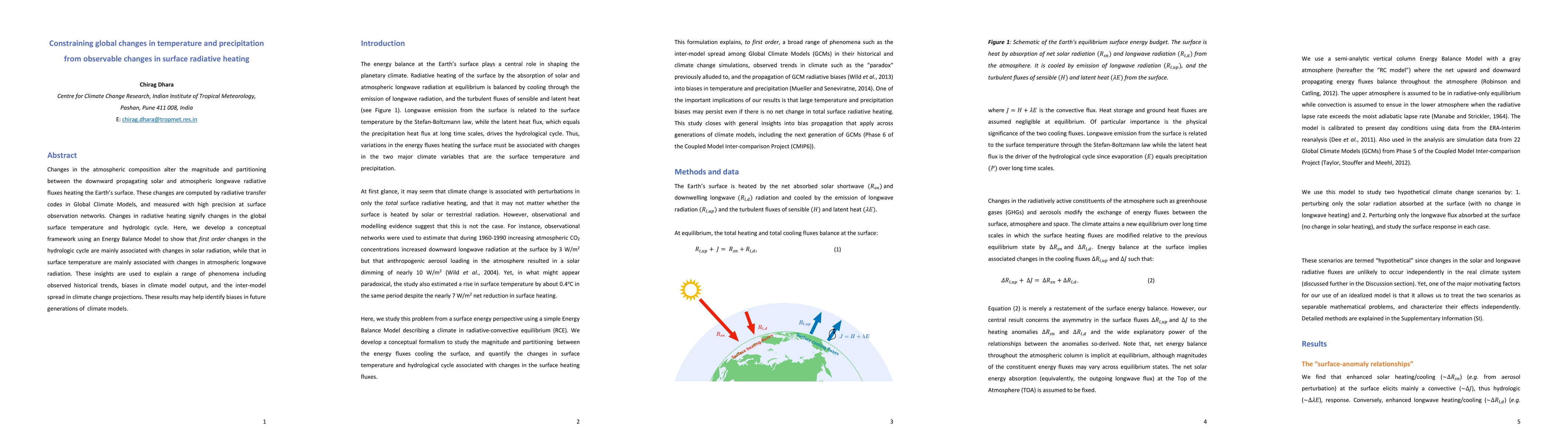 This paper develops a conceptual framework using an Energy Balance Model to link observable changes in surface radiative heating to global temperature and precipitation changes. It finds that solar radiation primarily affects the hydrologic cycle, while atmospheric longwave radiation mainly influences surface temperature, providing insights into historical trends and model biases.
