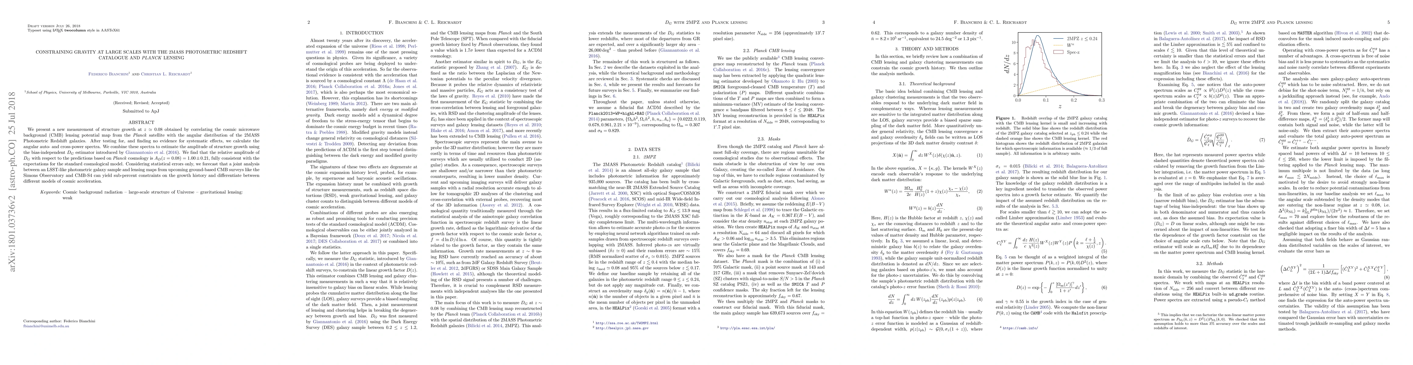 This paper measures structure growth at $z \simeq 0.08$ by correlating the CMB lensing potential from Planck with 2MASS galaxies, finding no deviation from standard cosmological model predictions. Future joint analyses with LSST and upcoming CMB surveys could provide sub-percent constraints on cosmic acceleration models.