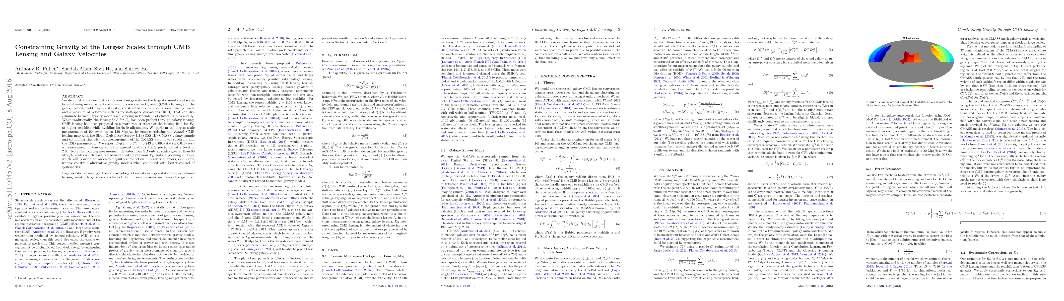 This paper presents a novel method to test gravity on cosmological scales by combining CMB lensing and galaxy velocity fields, reporting a measurement of $E_G$ that shows tension with general relativity predictions at 2.6$\sigma$ on scales greater than 80 Mpc/$h$. Upcoming surveys promise to reduce statistical errors and further constrain alternative gravity models.