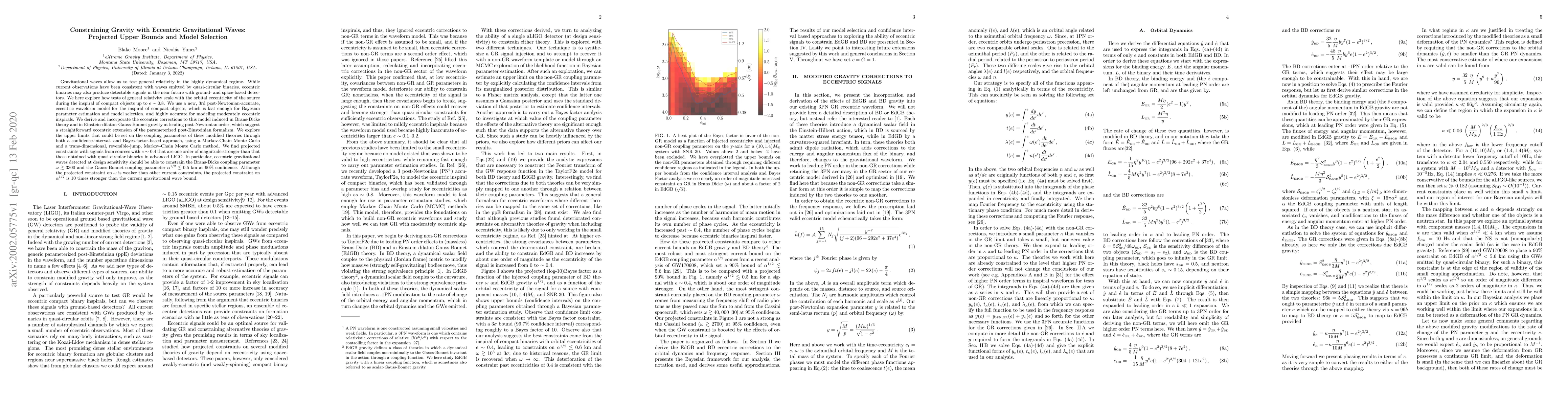 Gravitational waves allow us to test general relativity in the highly dynamical regime. While current observations have been consistent with waves emitted by quasi-circular binaries, eccentric binaries may also produce detectable signals in the near future with ground- and space-based detectors. We here explore how tests of general relativity scale with the orbital eccentricity of the source during the inspiral of compact objects up to $e \sim 0.8$. We use a new, 3rd post-Newtonian-accurate, eccentric waveform model for the inspiral of compact objects, which is fast enough for Bayesian parameter estimation and model selection, and highly accurate for modeling moderately eccentric inspirals. We derive and incorporate the eccentric corrections to this model induced in Brans-Dicke theory and in Einstein-dilaton-Gauss-Bonnet gravity at leading post-Newtonian order, which suggest a straightforward eccentric extension of the parameterized post-Einsteinian formalism. We explore the upper limits that could be set on the coupling parameters of these modified theories through both a confidence-interval- and Bayes-factor-based approach, using a Markov-Chain Monte Carlo and a trans-dimensional, reversible-jump, Markov-Chain Monte Carlo method. We find projected constraints with signals from sources with $e \sim 0.4$ that are one order of magnitude stronger than that those obtained with quasi-circular binaries in advanced LIGO. In particular, eccentric gravitational waves detected at design sensitivity should be able to constrain the Brans-Dicke coupling parameter $\omega \gtrsim 3300$ and the Gauss-Bonnet coupling parameter $\alpha^{1/2} \lesssim 0.5 \; {\rm{km}}$ at 90% confidence. Although the projected constraint on $\omega$ is weaker than other current constraints, the projected constraint on $\alpha^{1/2}$ is 10 times stronger than the current gravitational wave bound.