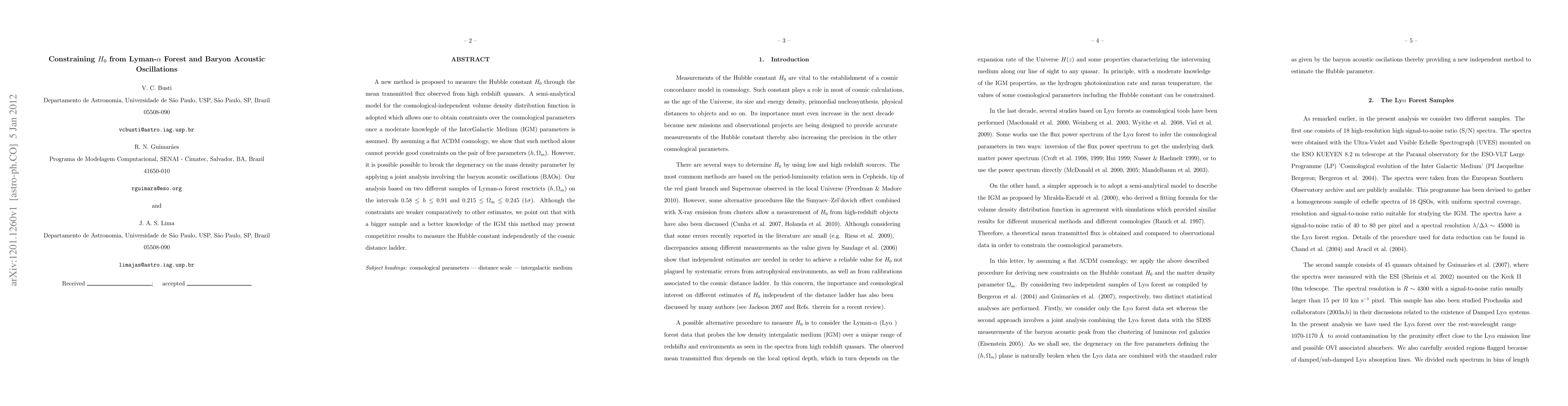 This paper proposes a new method to measure the Hubble constant H0 using the mean transmitted flux from high redshift quasars, combined with baryon acoustic oscillations (BAOs) to break degeneracies. While current constraints on parameters are weaker than other methods, the authors suggest that with larger samples and improved IGM knowledge, this method could become competitive.