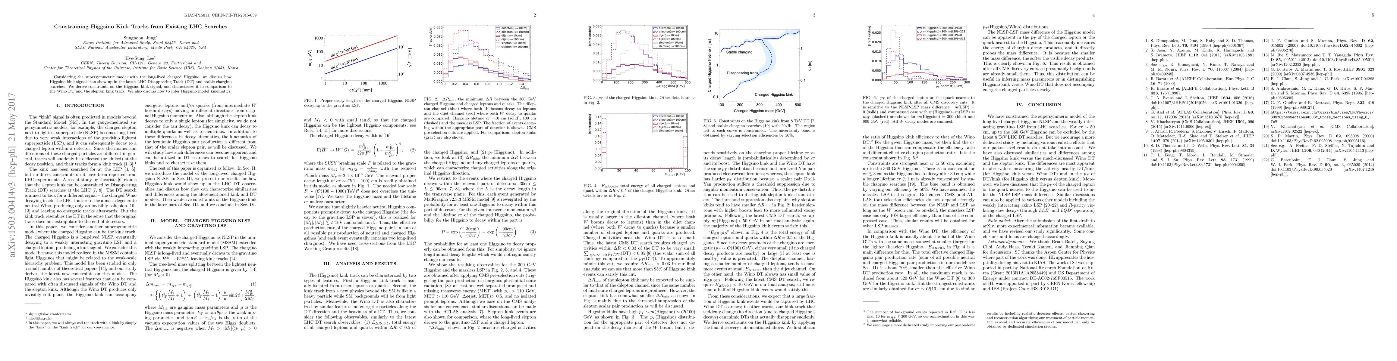 Considering the supersymmetric model with the long-lived charged Higgsino, we discuss how Higgsino kink signals can show up in the latest LHC Disappearing Track (DT) and stable chargino searches. We derive constraints on the Higgsino kink signal, and characterize it in comparison to the Wino DT and the slepton kink track. We also discuss how to infer Higgsino model kinematics.