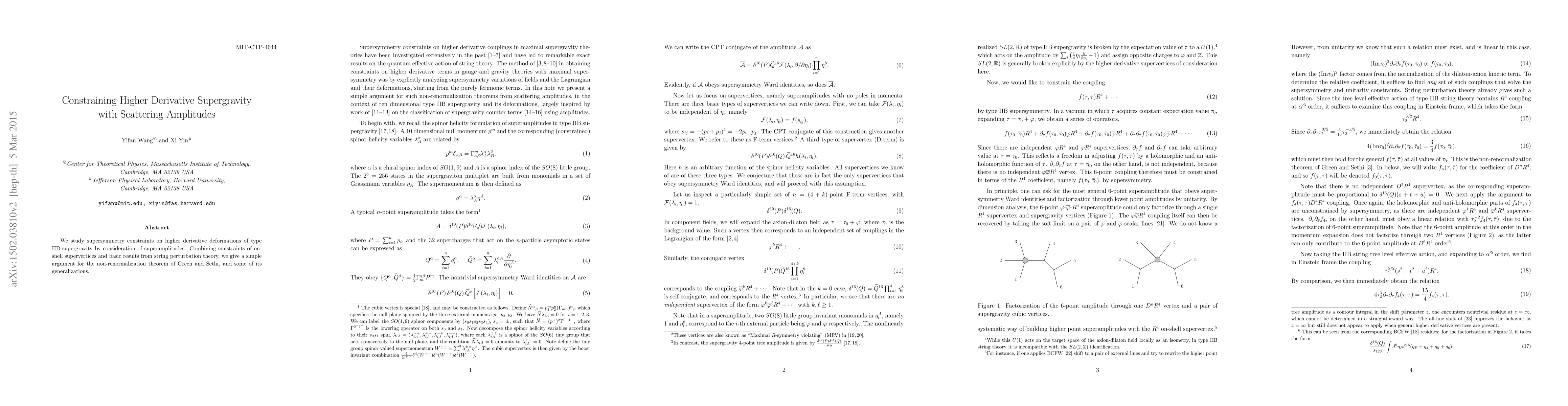 We study supersymmetry constraints on higher derivative deformations of type IIB supergravity by consideration of superamplitudes. Combining constraints of on-shell supervertices and basic results from string perturbation theory, we give a simple argument for the non-renormalization theorem of Green and Sethi, and some of its generalizations.